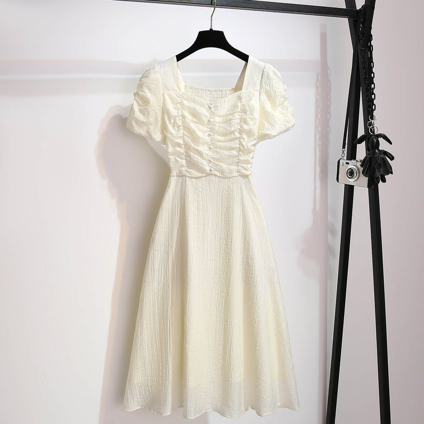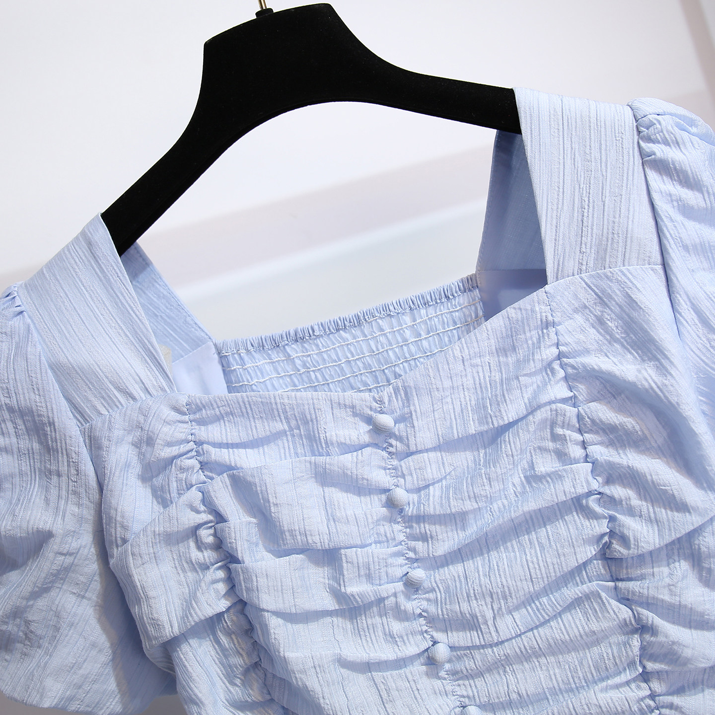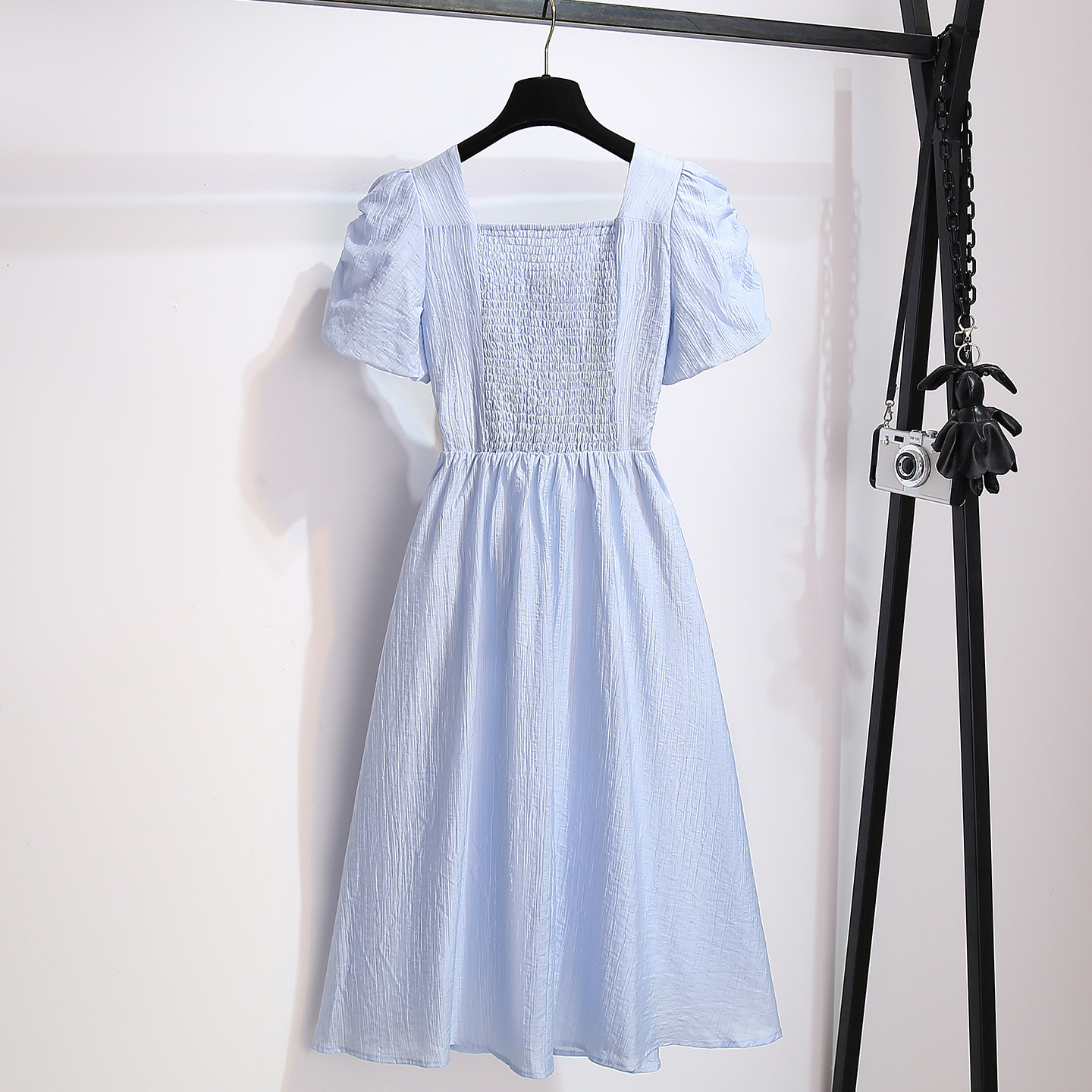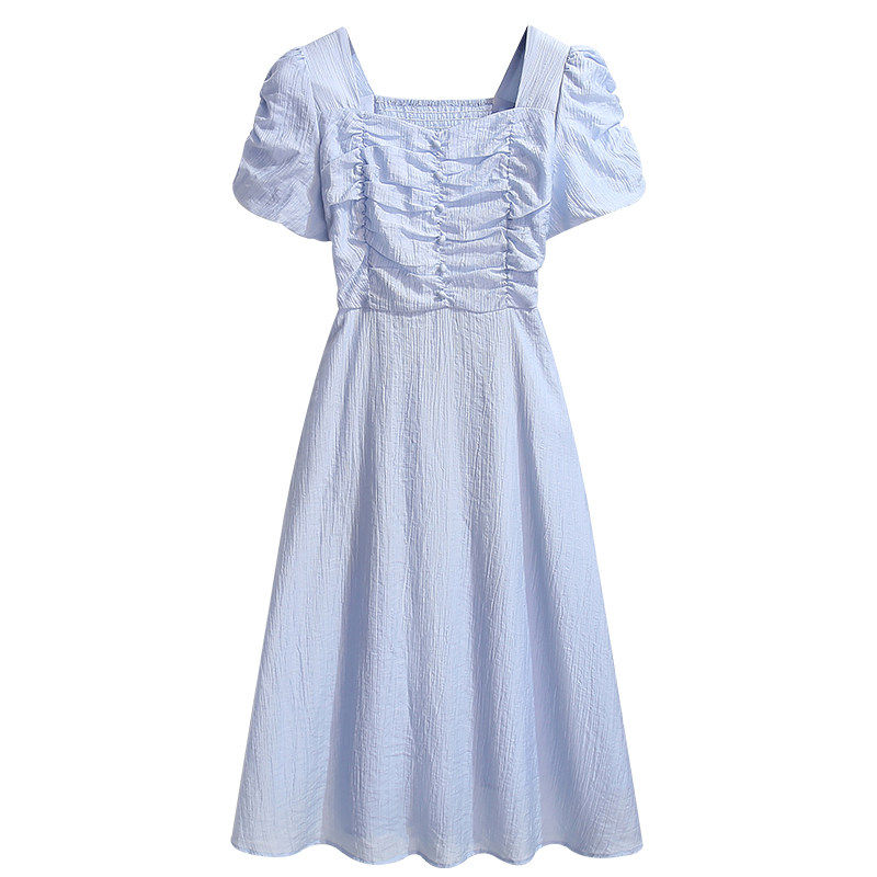 质感高级感收腰a字裙子 新款 蓝色方领泡泡袖 天丝连衣裙女2026夏季