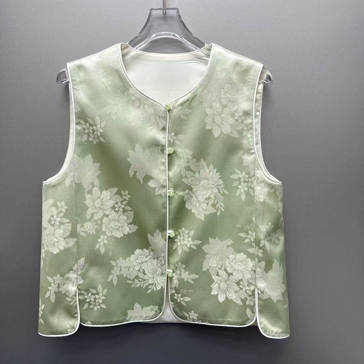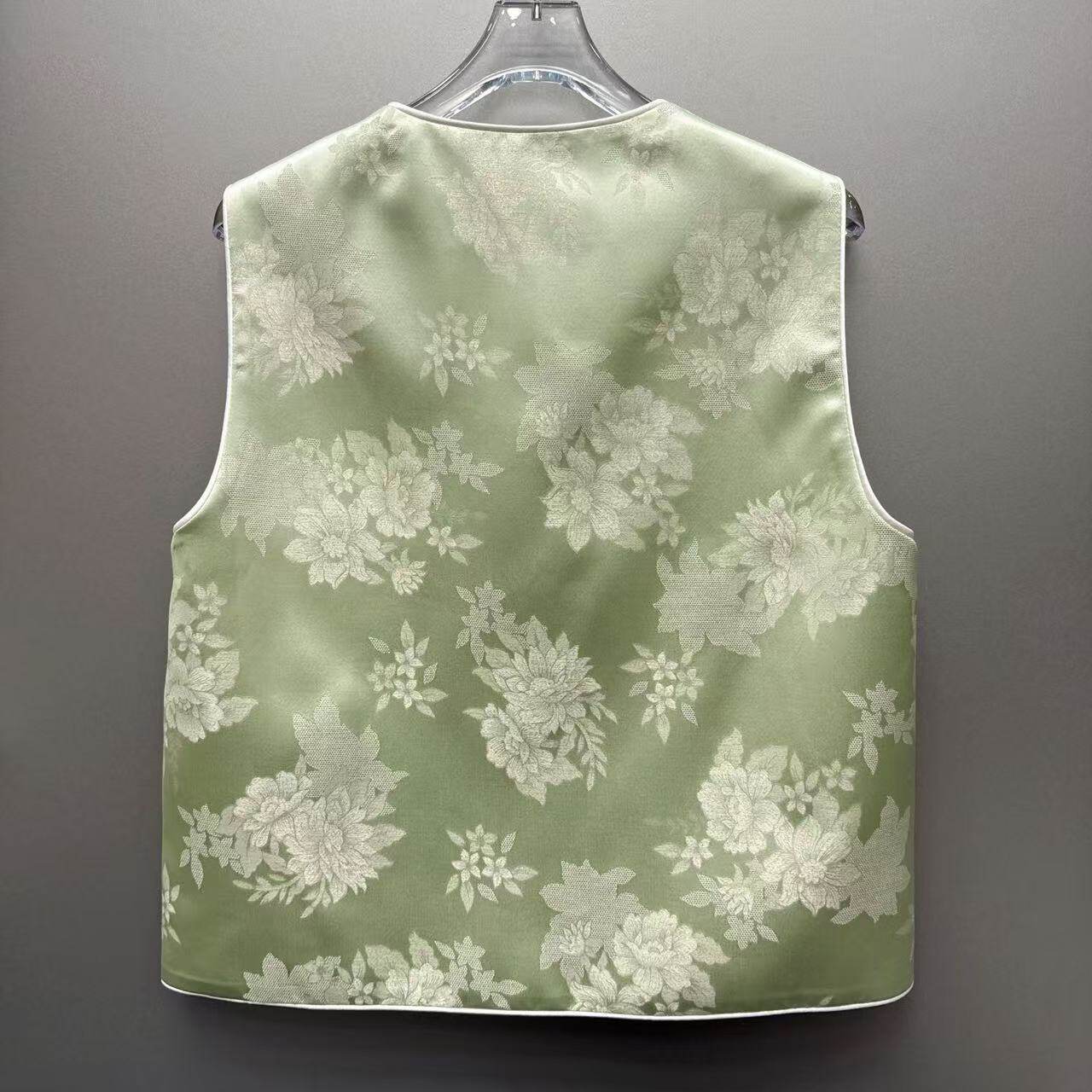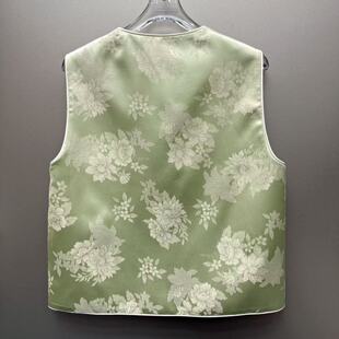 YCJ新中式 减龄马甲 高端绿色提花马夹2026春季