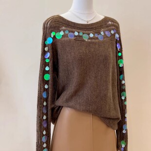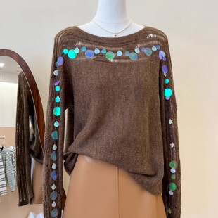 推荐 软糯长袖 氛围感绿色镂空亮片长袖 女春季 上衣 针织衫 自留爆款