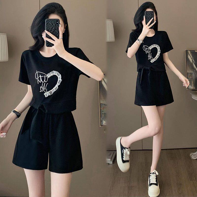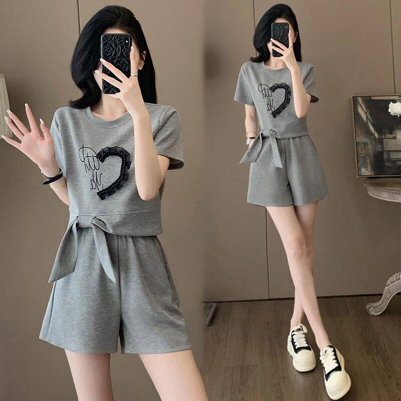 休闲运动短袖 女小个子时尚 短裤 套装 高档跑步服两件套 大码 2026新款