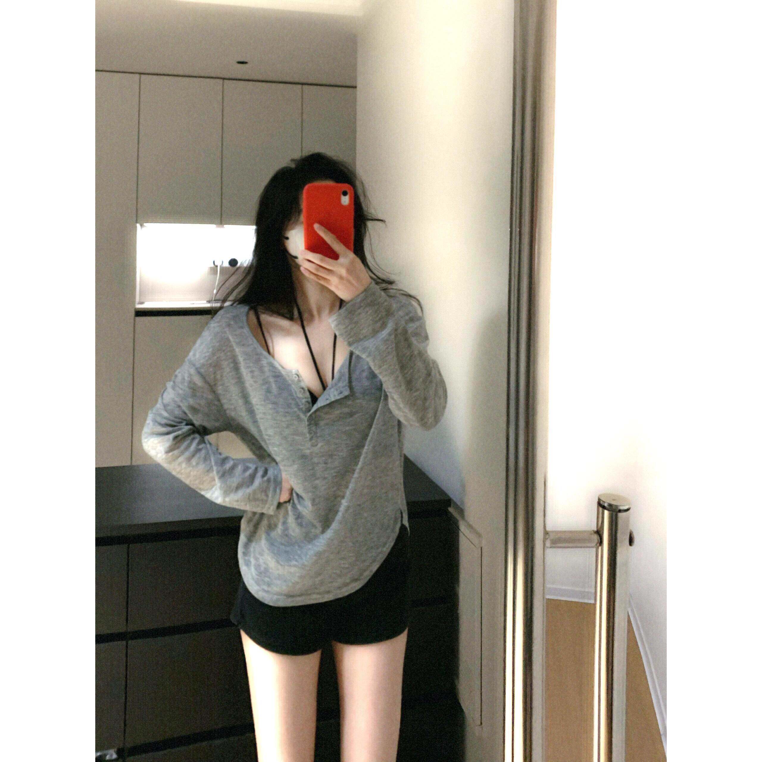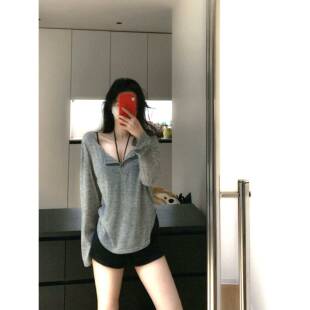 防晒衬衫 夏款 薄宽松慵懒风格 女t恤夏季 轻松夏0317d 灰色大尺寸长袖