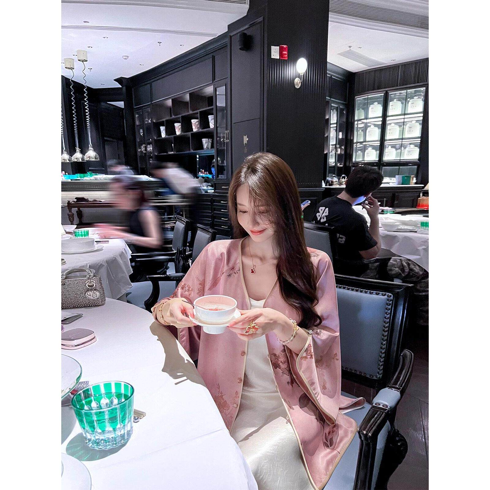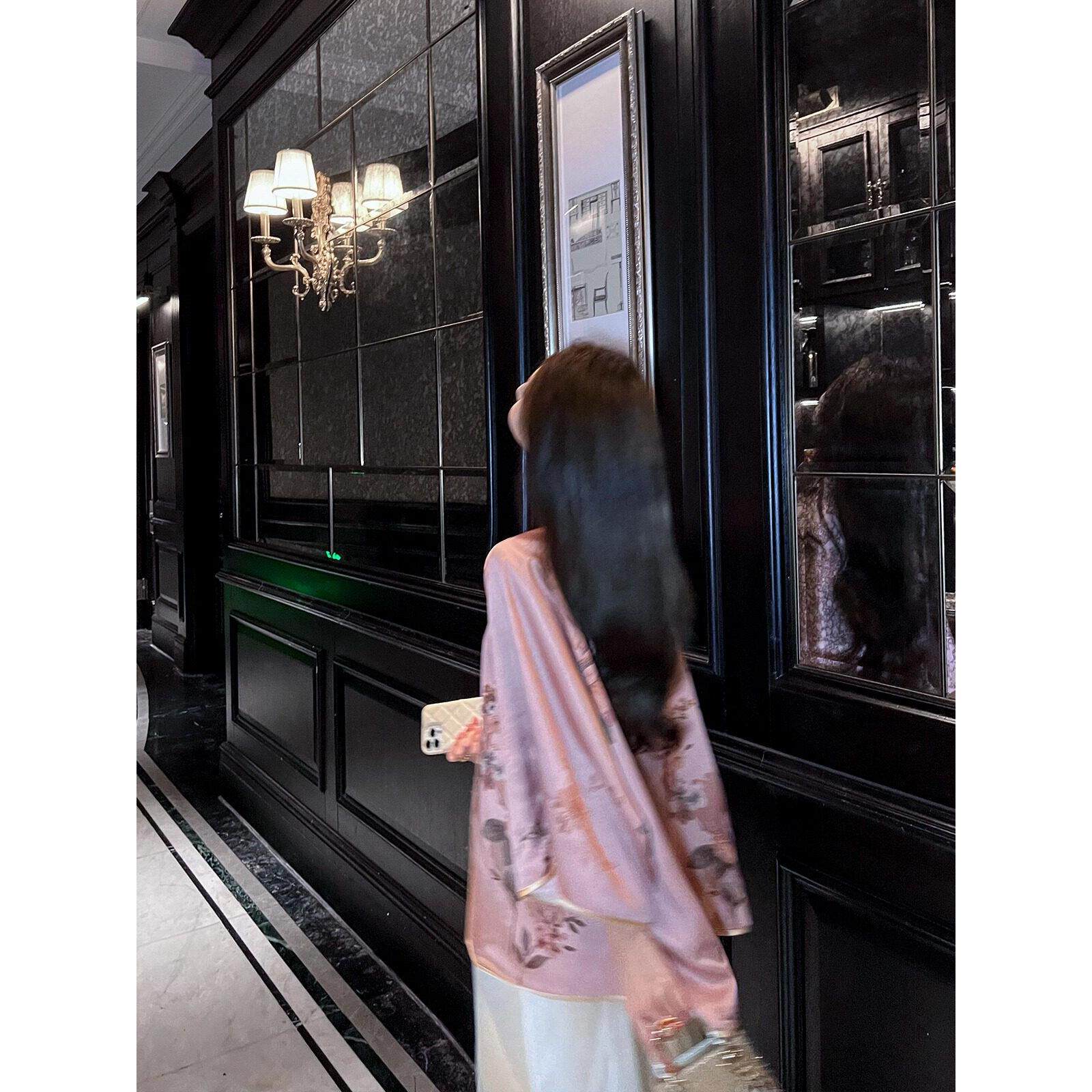 粉色外套女装 宽松胖mm禅衬衫 2025春秋季 大码 新款 新中国风民族风格