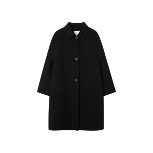 朗姿2025冬新款 LANCY 纯羊毛 气质黑色双面呢长大衣 宋佳同款