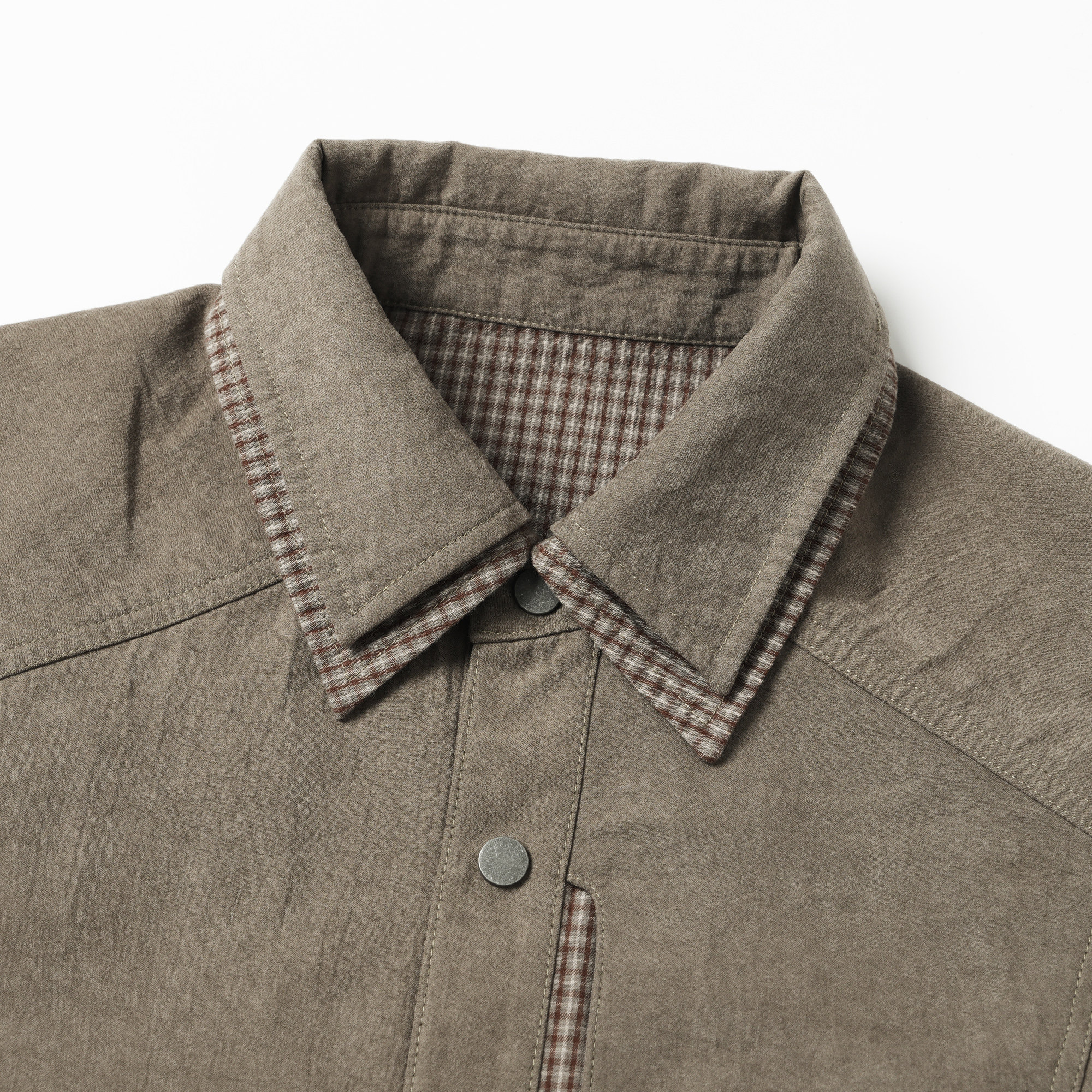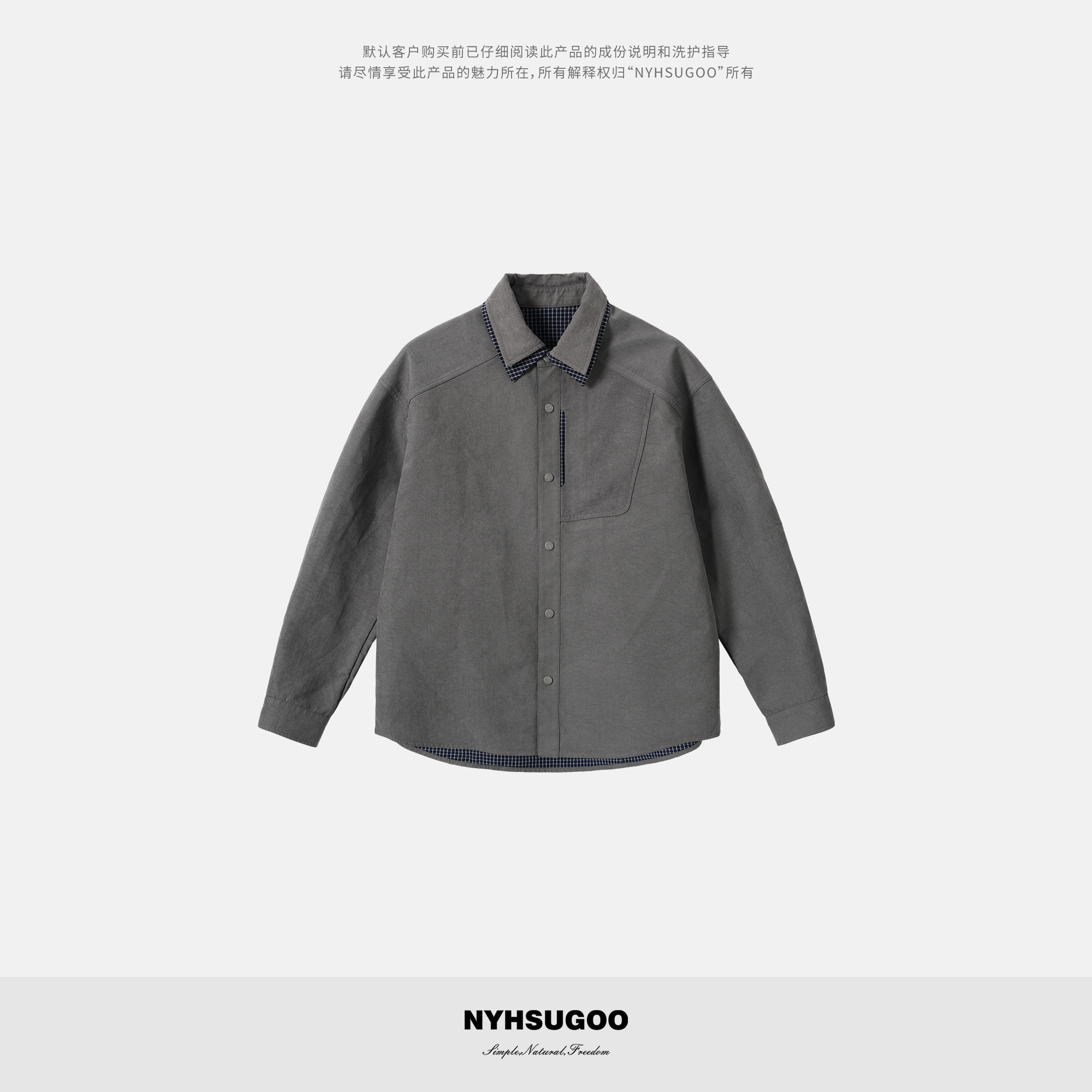 廓形长袖 NYHSUGOO 男士 复古拼格子双领衬衫 3851衬衣外套 南乙秋季