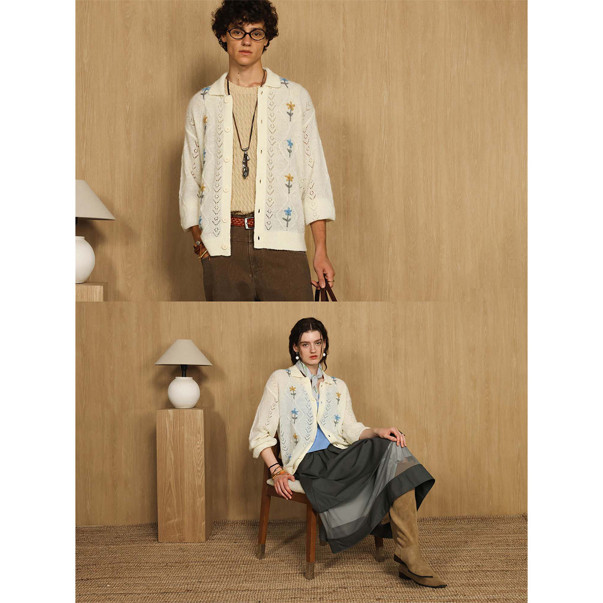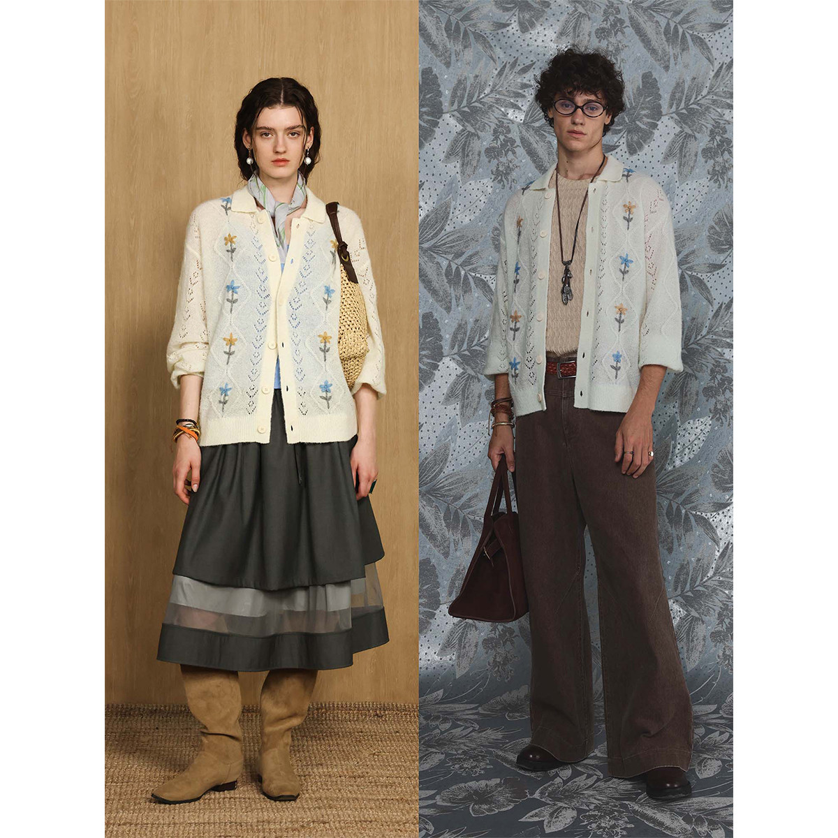 情侣花朵刺绣上衣男女同款 连帽针织开衫 新年毛衣新款 INXX明星同款
