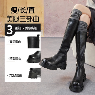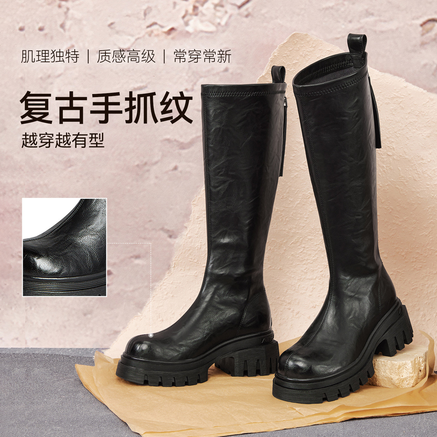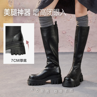 骑士靴时尚 商场同款 潮流粗跟女长靴F6013DG5 新款 百思图2025冬季