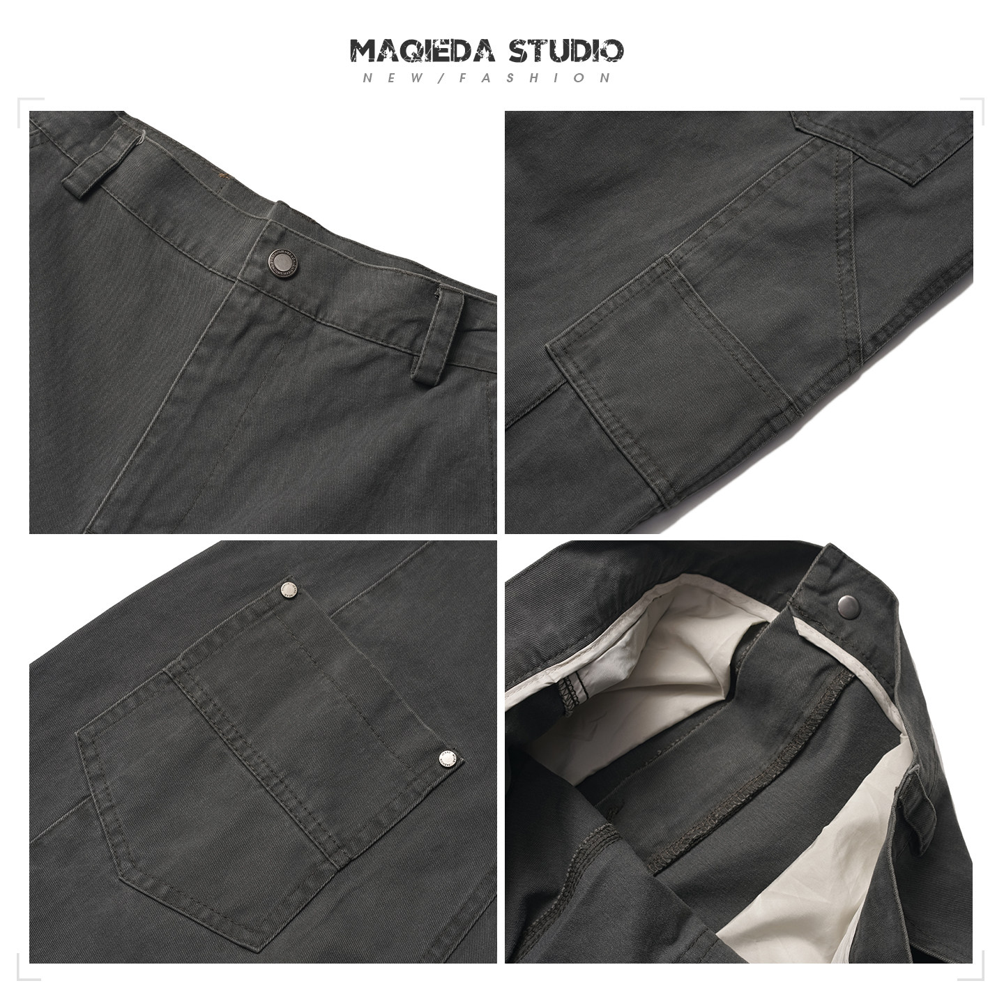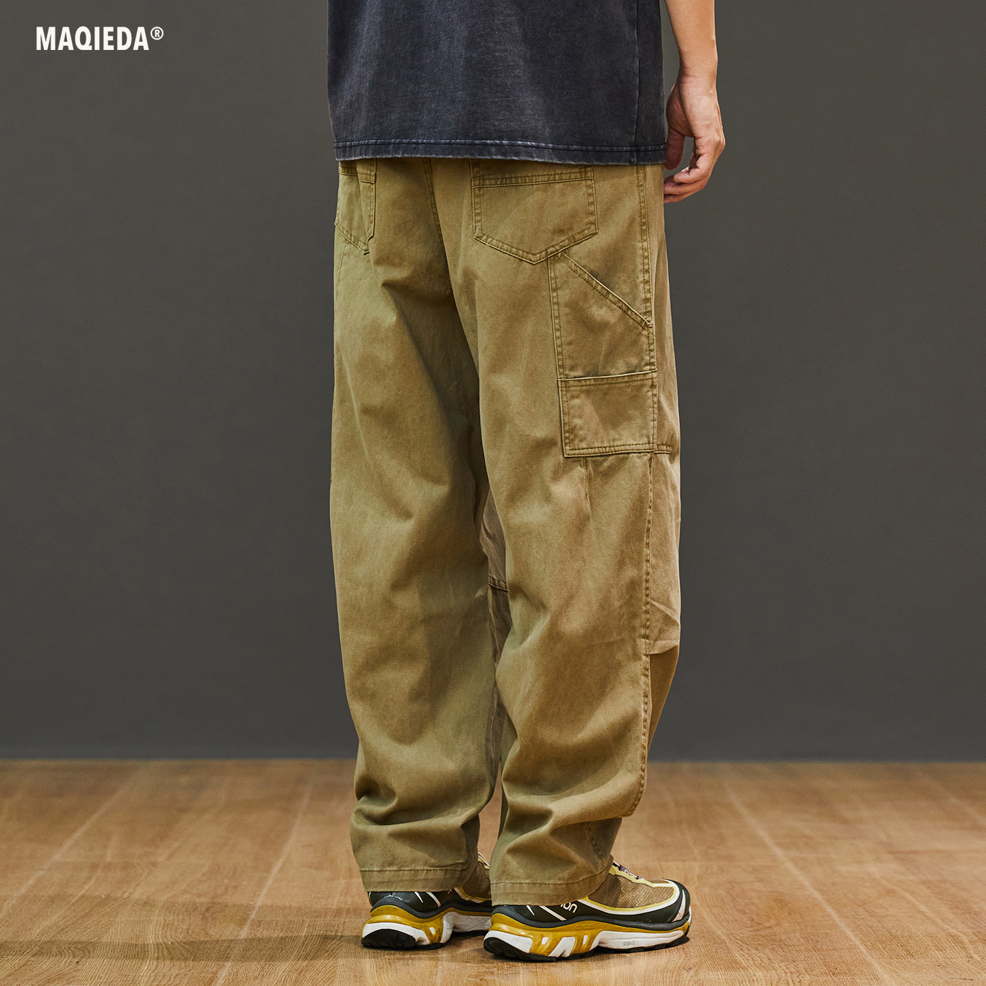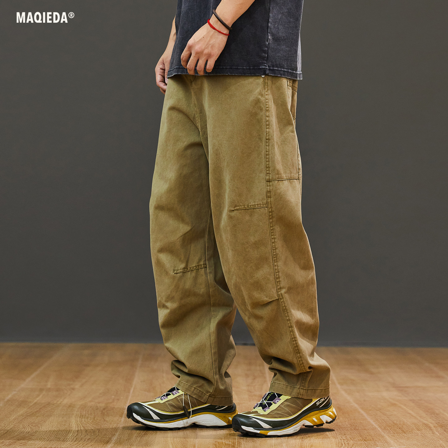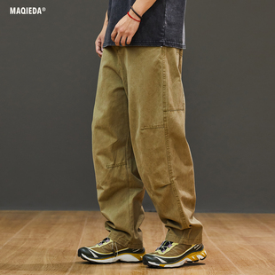 美式 复古宽松百搭裤 高街直筒长裤 纯棉休闲弯刀裤 子潮牌 工装 男秋季