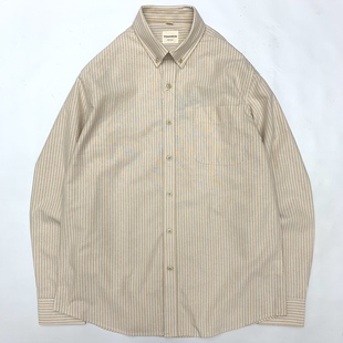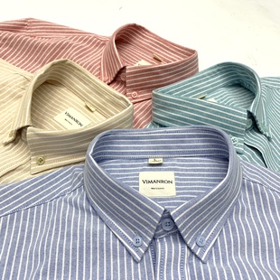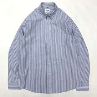 扣领商务休闲长袖 正式 衬衣 男日系复古青年全棉日式 牛津纺条纹衬衫