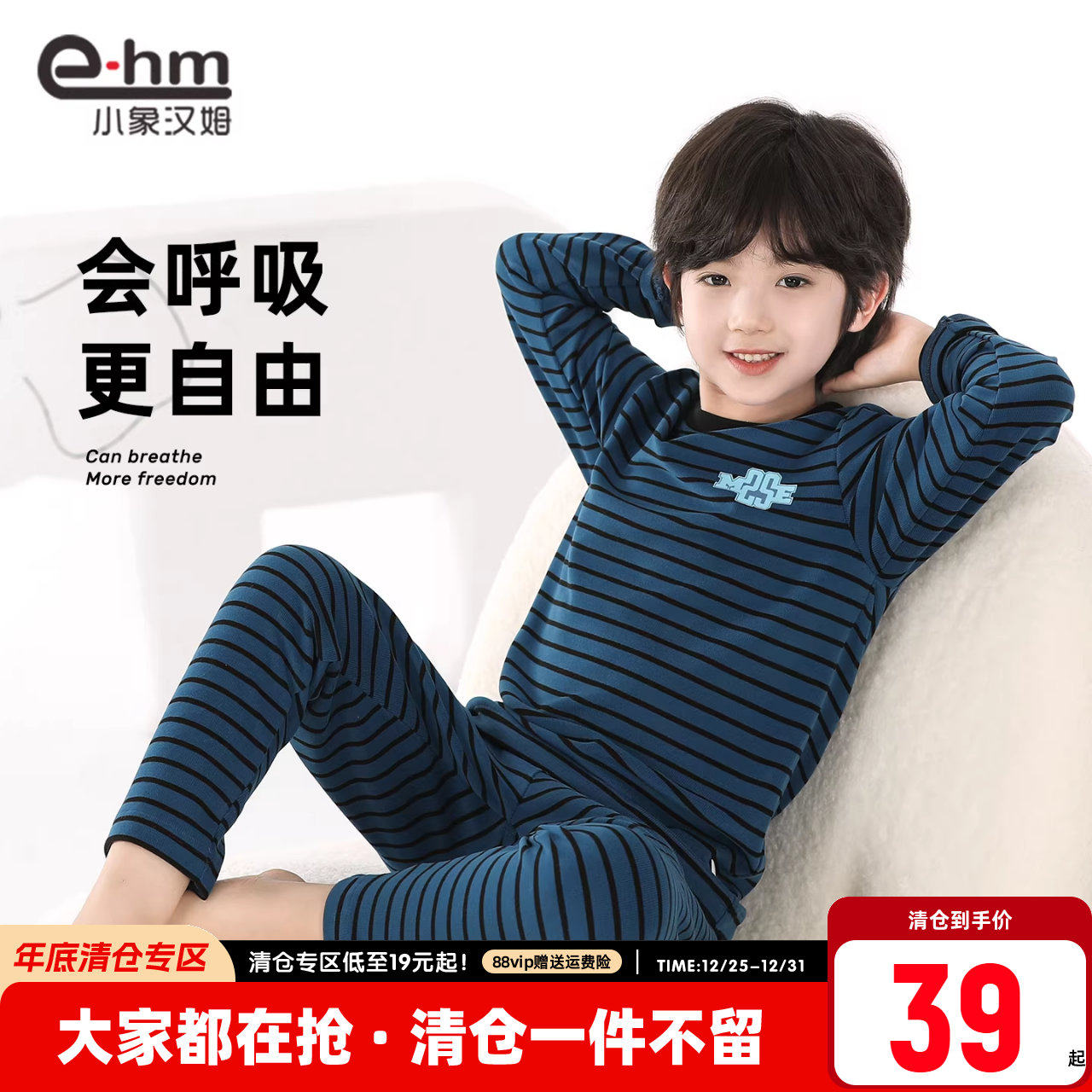 中大童A类 儿童睡衣两件套2025新款 小象汉姆童装 男童家居服套装