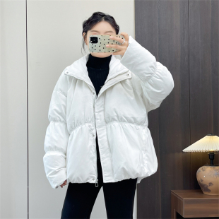 惠衣阁秋冬女长袖 宽松休闲白色羽绒外套 羽绒服立领羽绒外套韩版