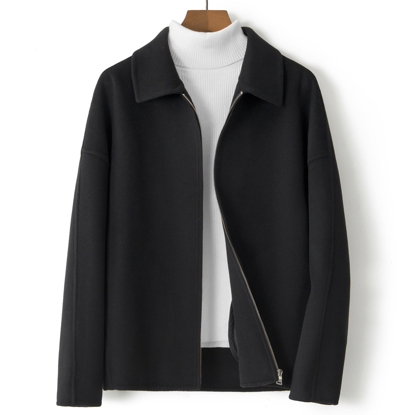 桑蚕丝羊毛双面呢子短款 男士 夹克宽松休闲加厚行政外套潮 新款 冬季