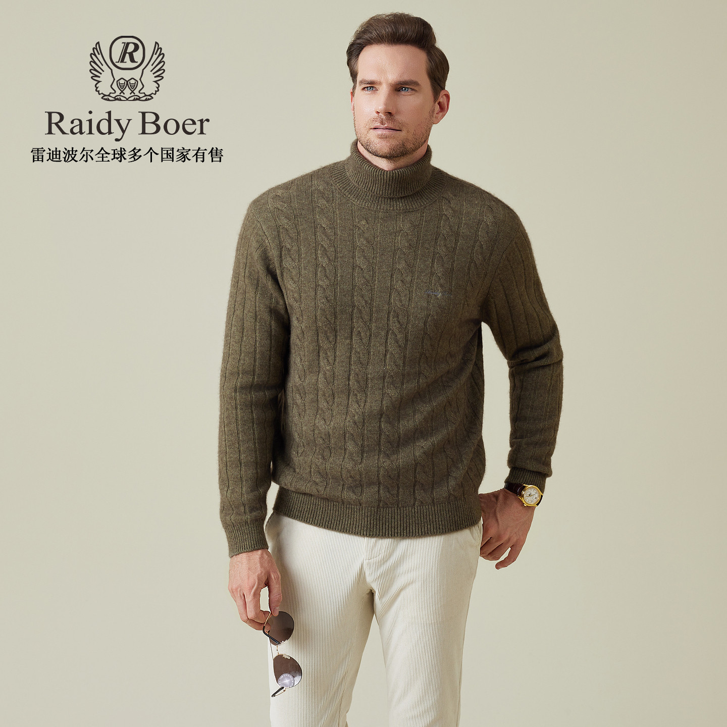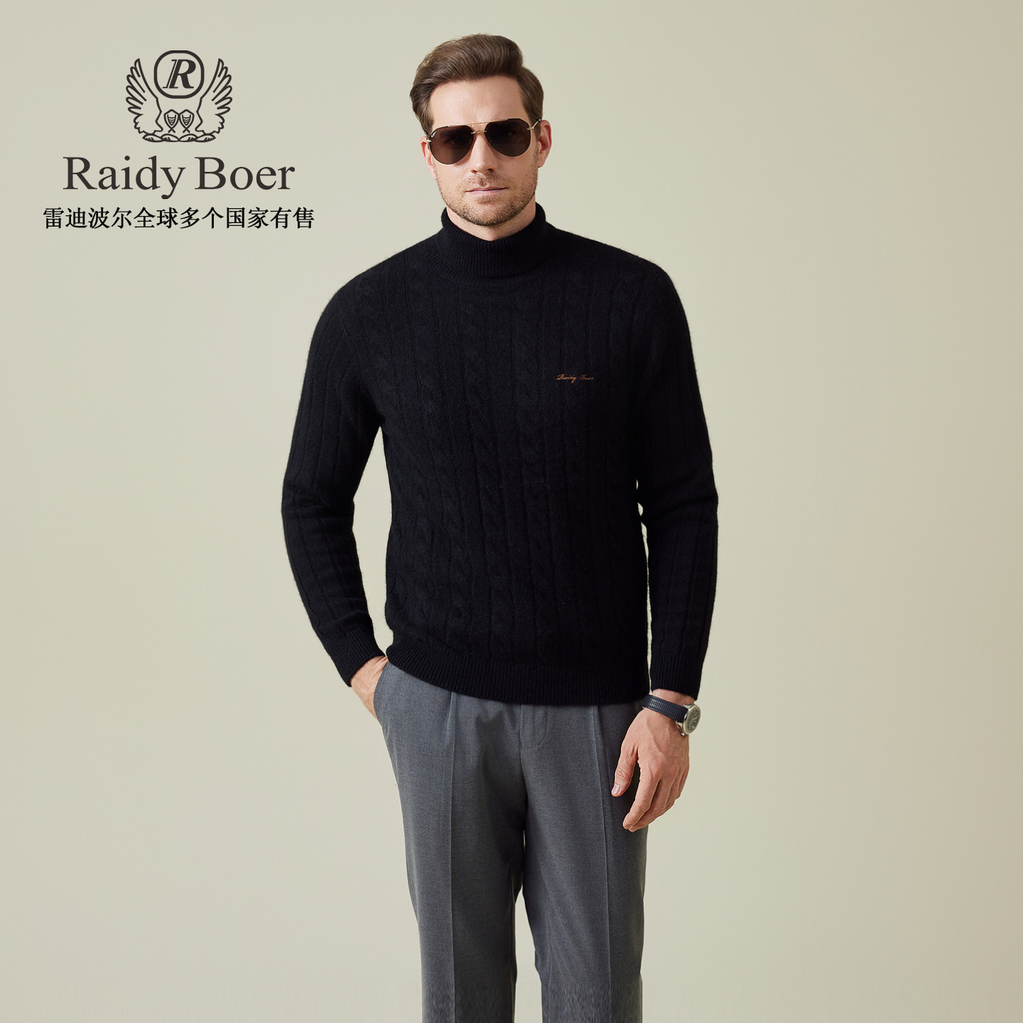 雷迪波尔2025冬男刺绣针织毛衣 Boer Raidy 5531 老钱风牦牛绒