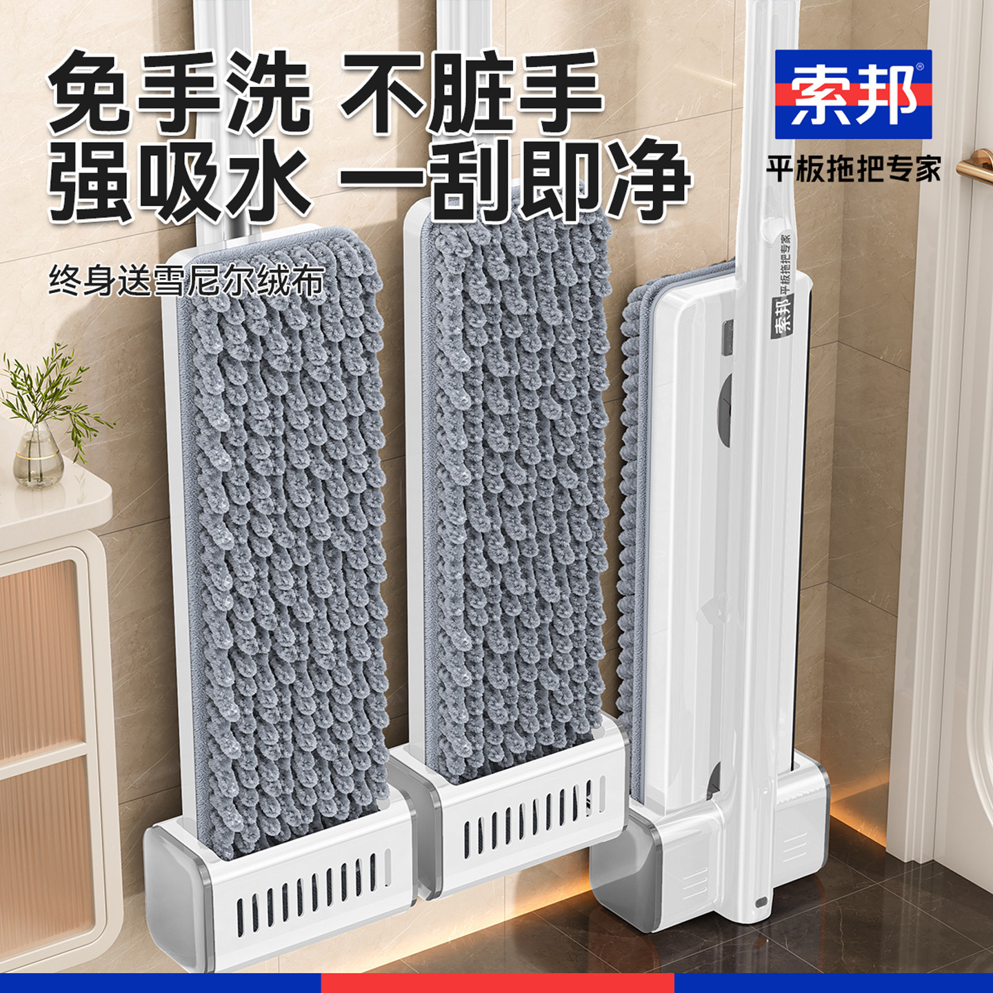 雪尼尔拖把2025新款 平板毛毛虫家用吸水大面积商家政保洁专用尘推