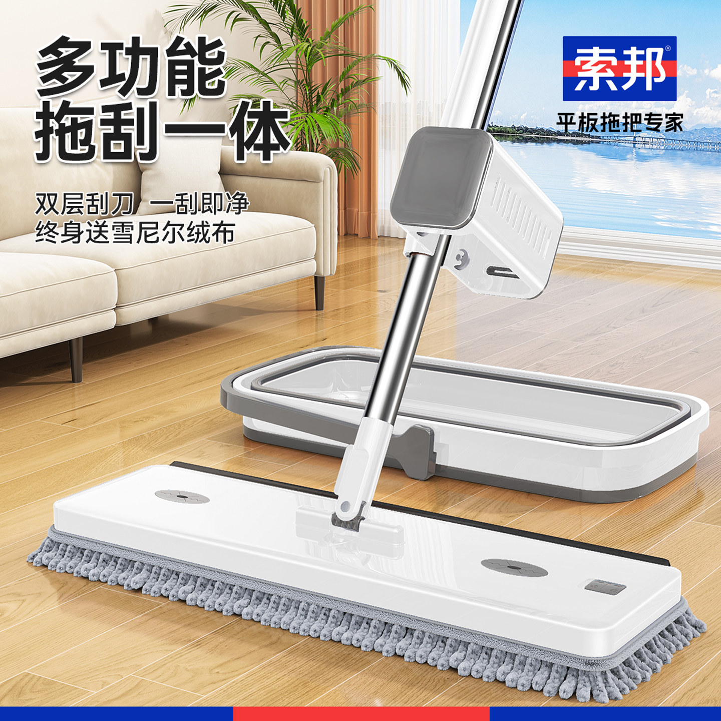 佳帮手拖把2025新款 家用第一名平板铝合金一拖净干湿两用拖地神器