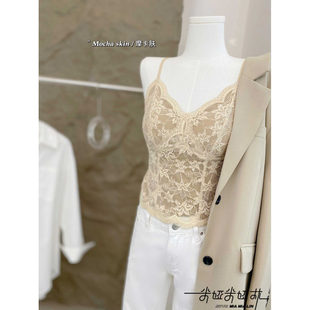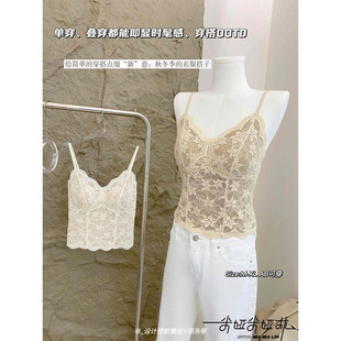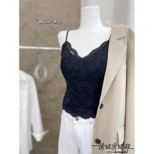 秋冬新款 V领性感蕾丝磨毛美背吊带背心女带胸垫内搭抹胸上衣 法式