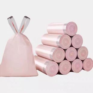 垃圾袋抽绳加厚家用手提式 特厚塑料拉级袋 粉色大号办公厨房实惠装