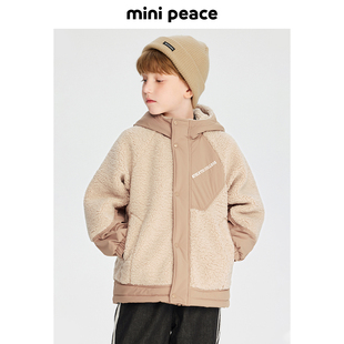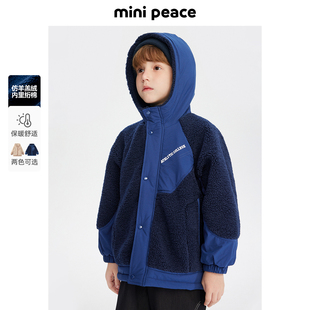 MINIPEACE太平鸟童装 男童仿羊羔绒外套儿童拼接简潮夹克秋冬新款
