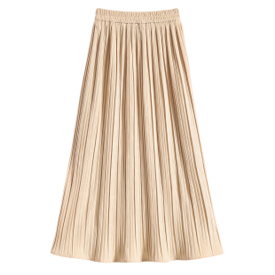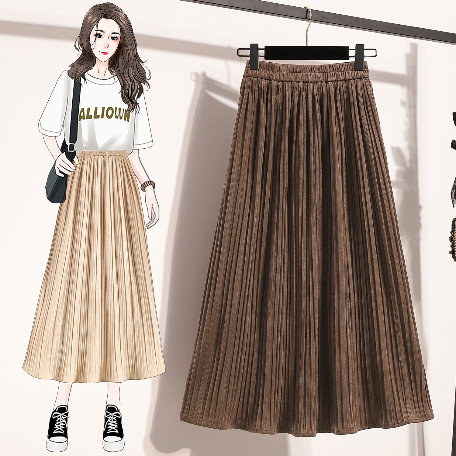 胖mm松紧高腰收腹中长款 A字半身裙女气质百搭舒适透气百褶丝绒裙