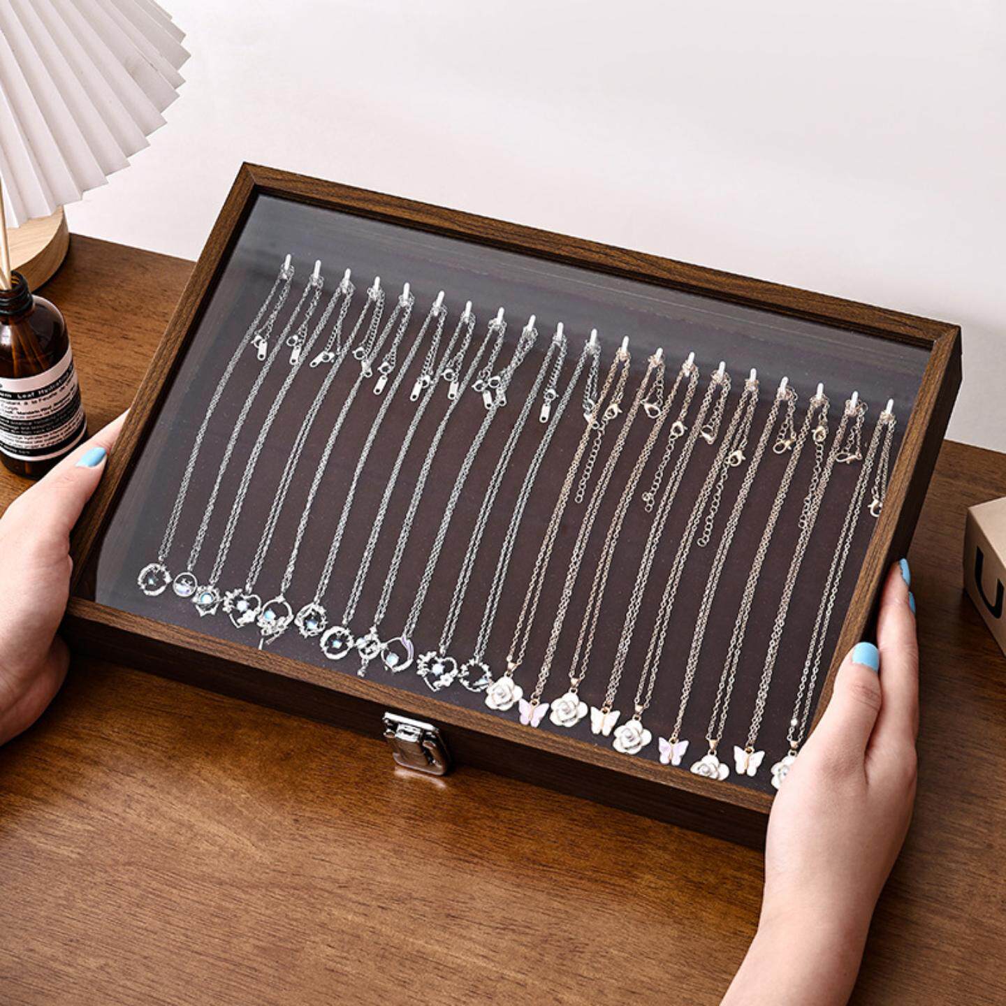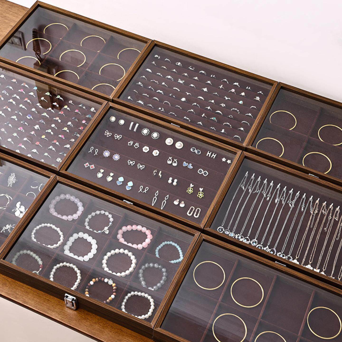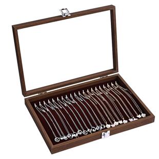 胡桃木色百位戒指项链首饰收纳盒耳钉耳环饰品首饰盒摆摊防尘珠宝