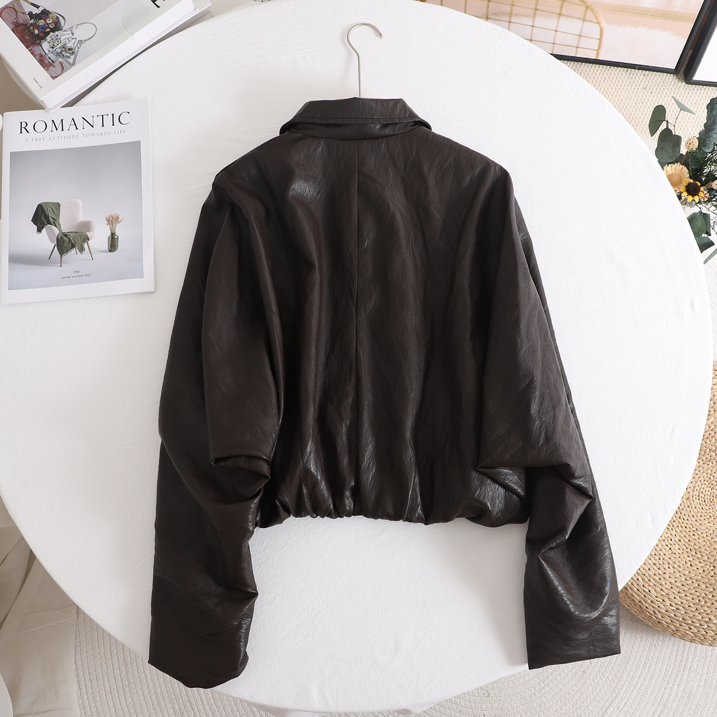 百搭显瘦休闲设计感气质蝙蝠袖 时尚 皮衣外套女 2025早秋新款 诗系