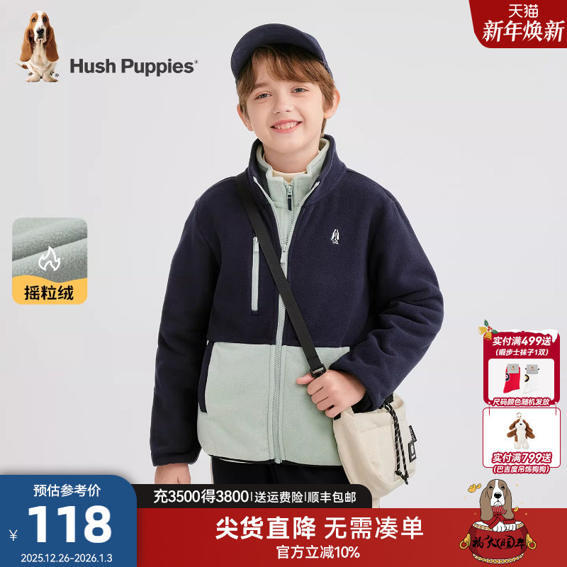 暇步士童装 男大童休闲摇粒绒外套女童保暖上衣 儿童外套25秋冬新品