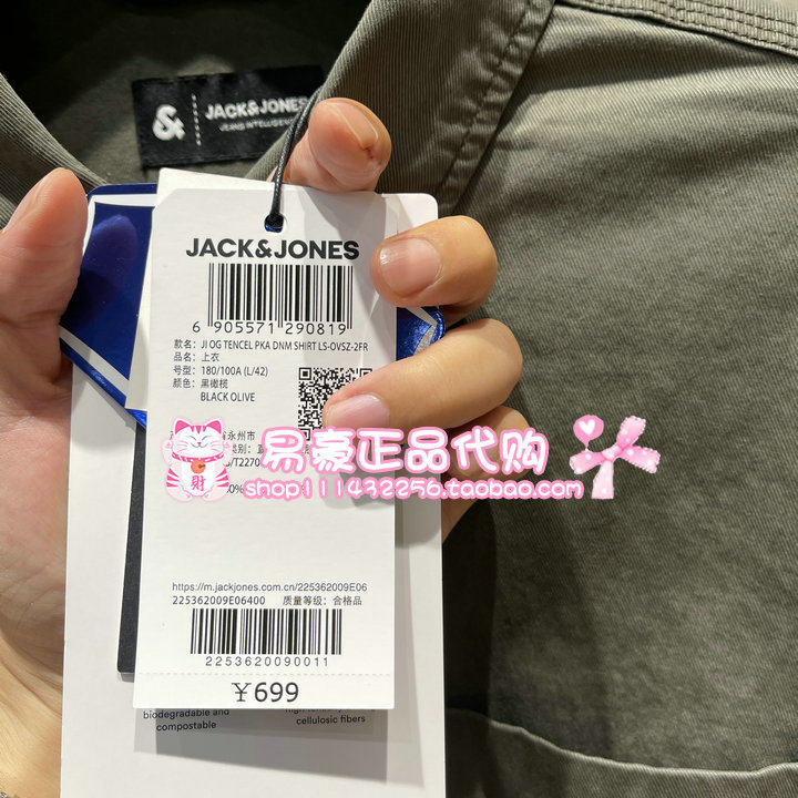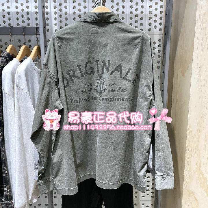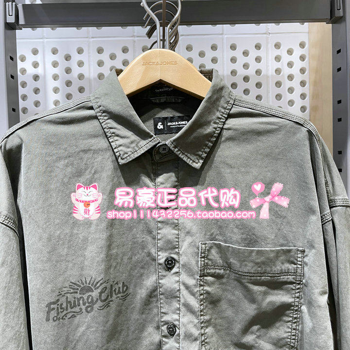 225362009 上衣 E06 字母印花口袋翻领廓形纯色长袖 杰克琼斯衬衫