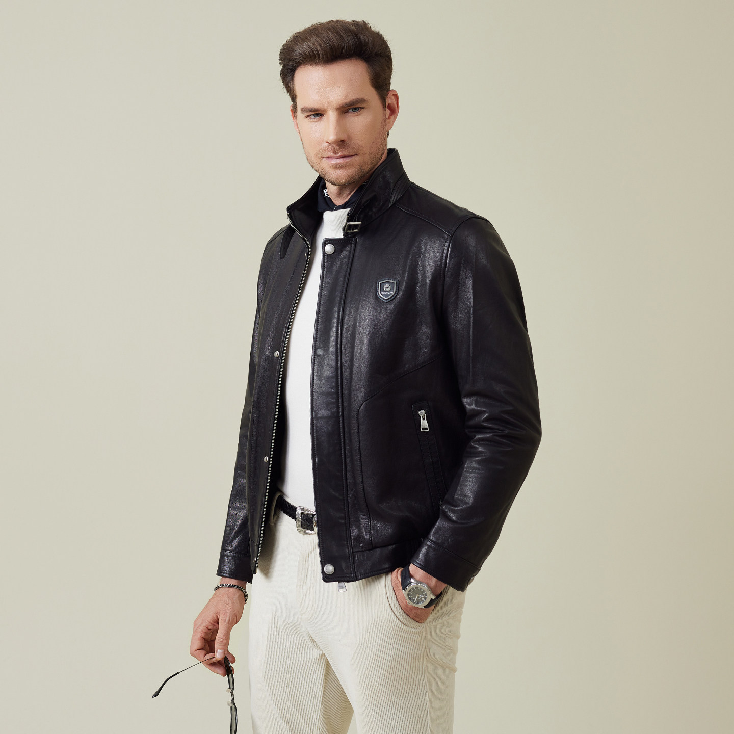 老钱风立领牛皮革皮夹克外套男 新款 雷迪波尔男装 真皮皮衣2025秋季