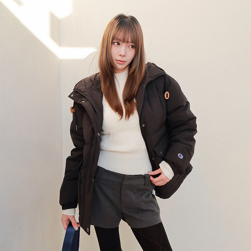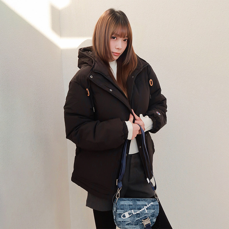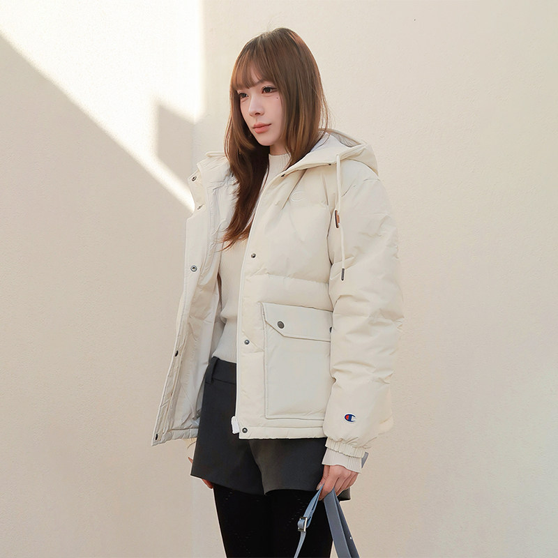 羽绒服女25冬季 Champion冠军短款 新款 黑色工装 保暖 风美式 三防