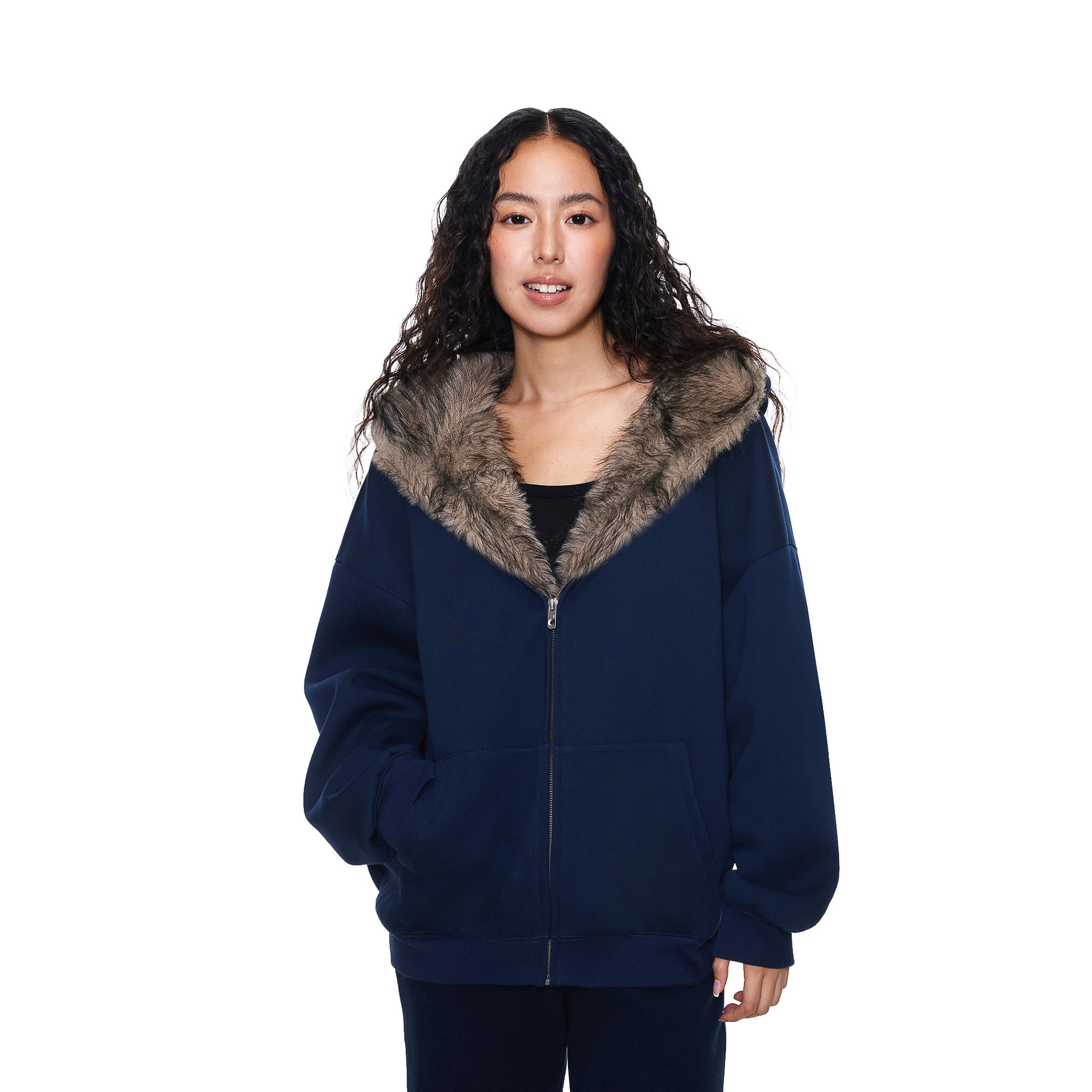 FDR官方店2025毛领空气层连帽卫衣男秋冬情侣宽松座山雕外套女