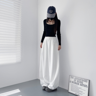 加绒胖mm显瘦松弛感休闲裤 女冬季 梨型身材高腰酷飒软糯阔腿裤 大码