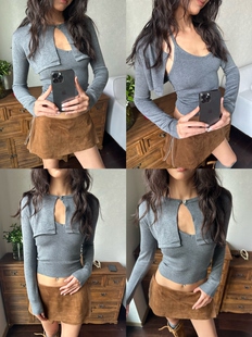 挂脖背心羊毛针织两件套 坎肩mini开衫 现货 WEEEECHAN次日早晨