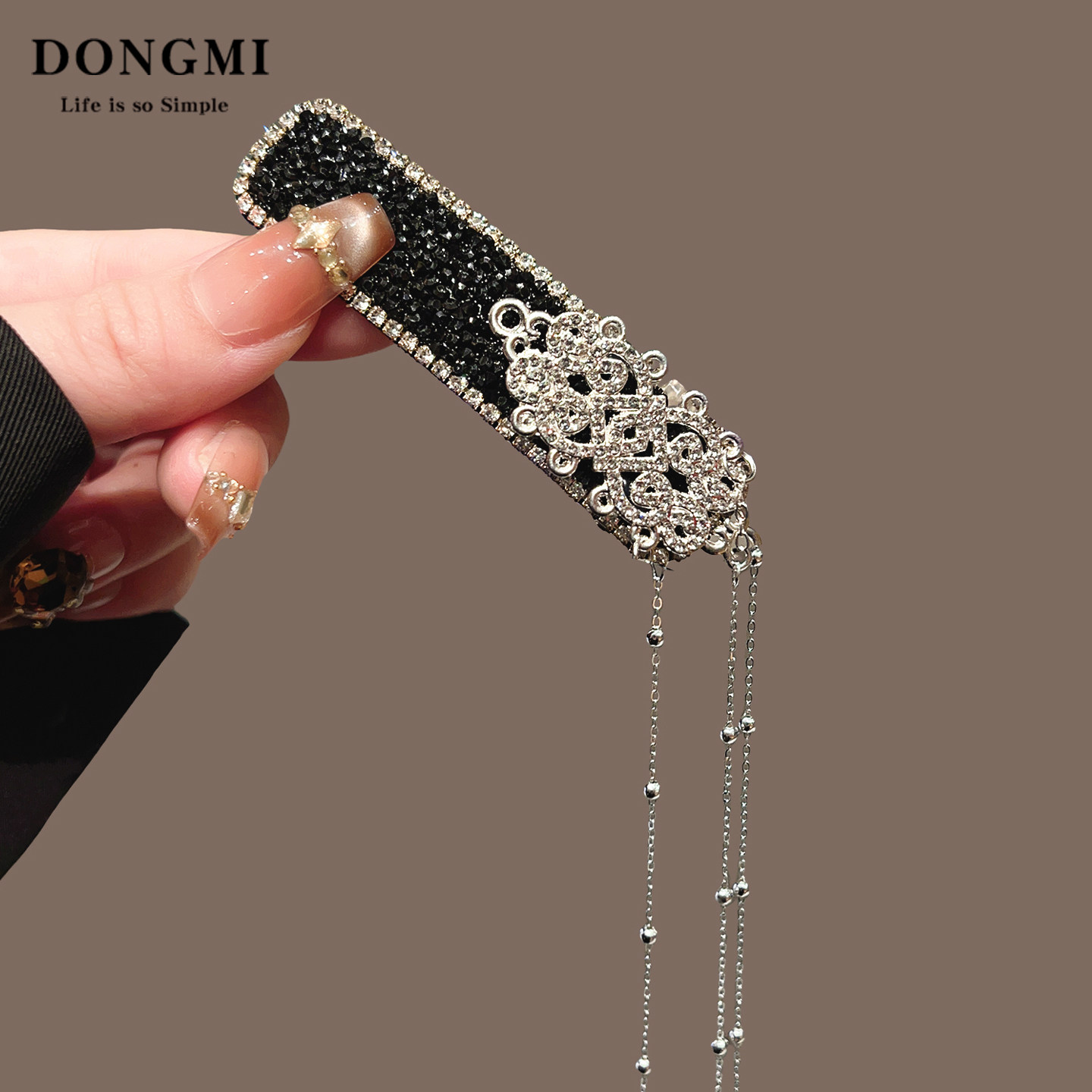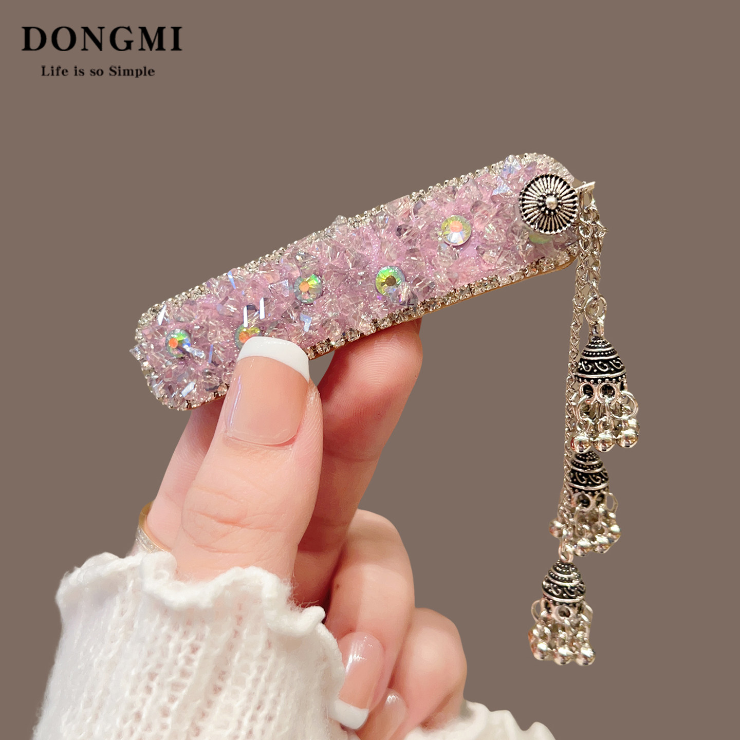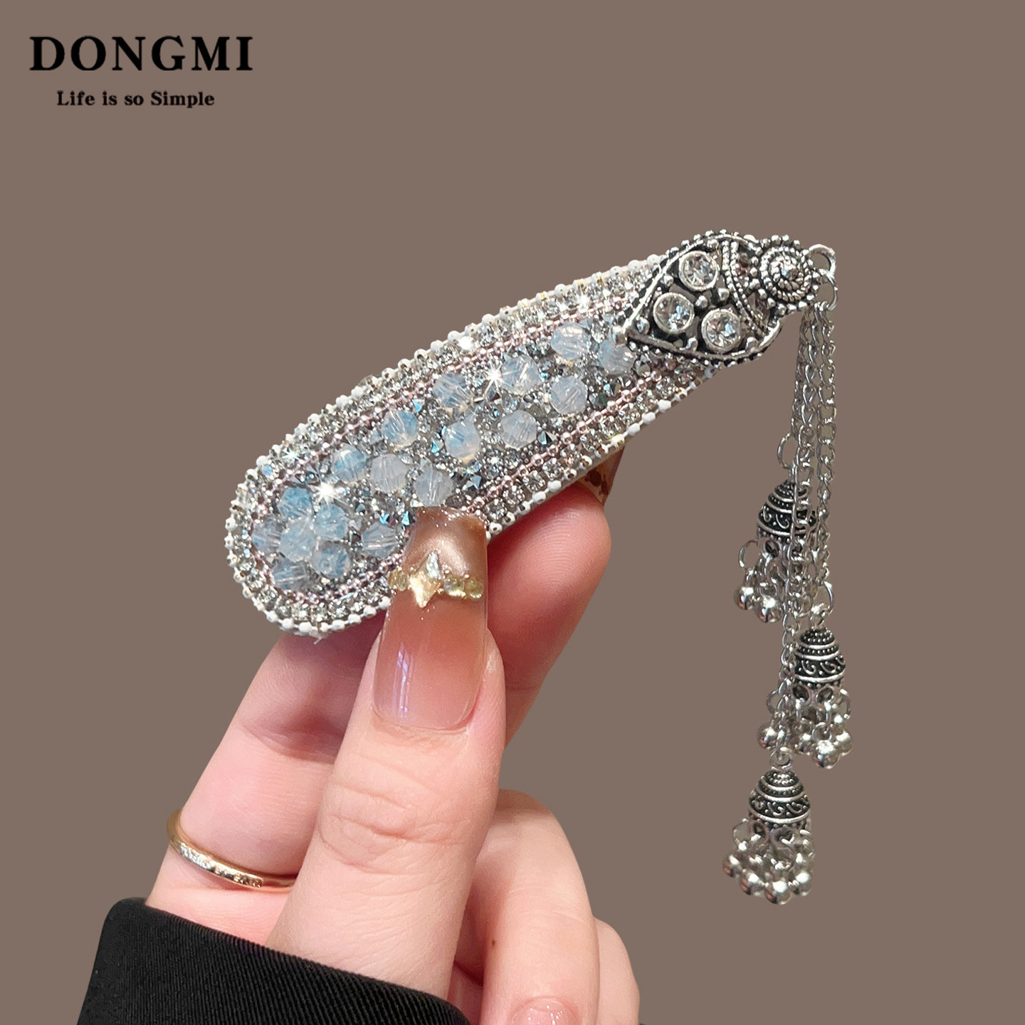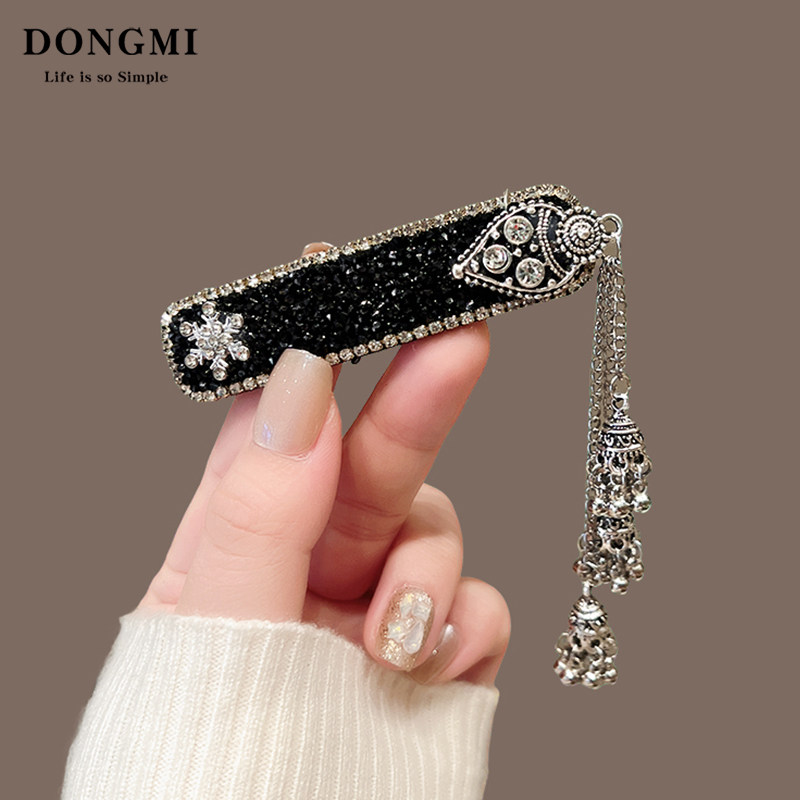璀璨星河 高端民族风刘海边夹 黑曜石闪钻铃铛流苏发夹女2025新款