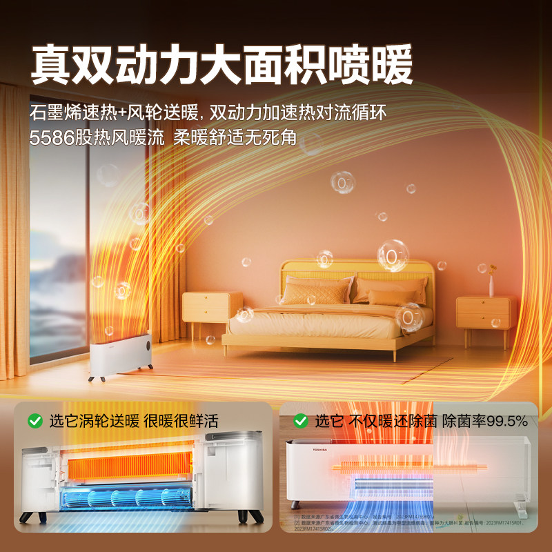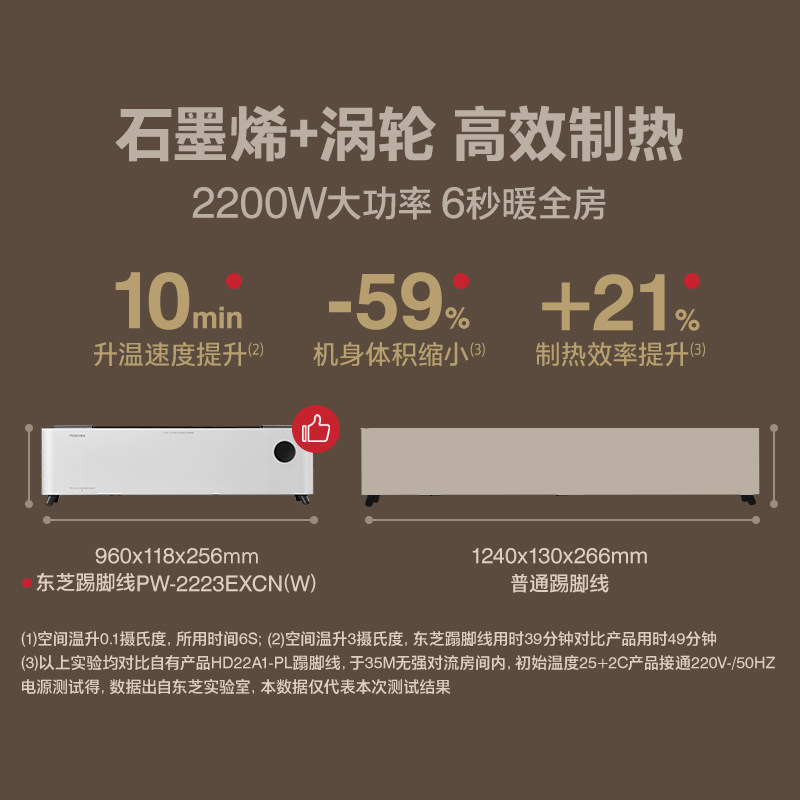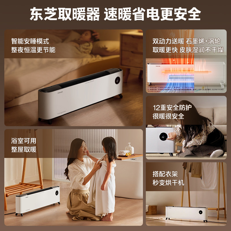 日本东芝石墨烯踢脚线春日和取暖器家用节能电暖气片负离子暖风机