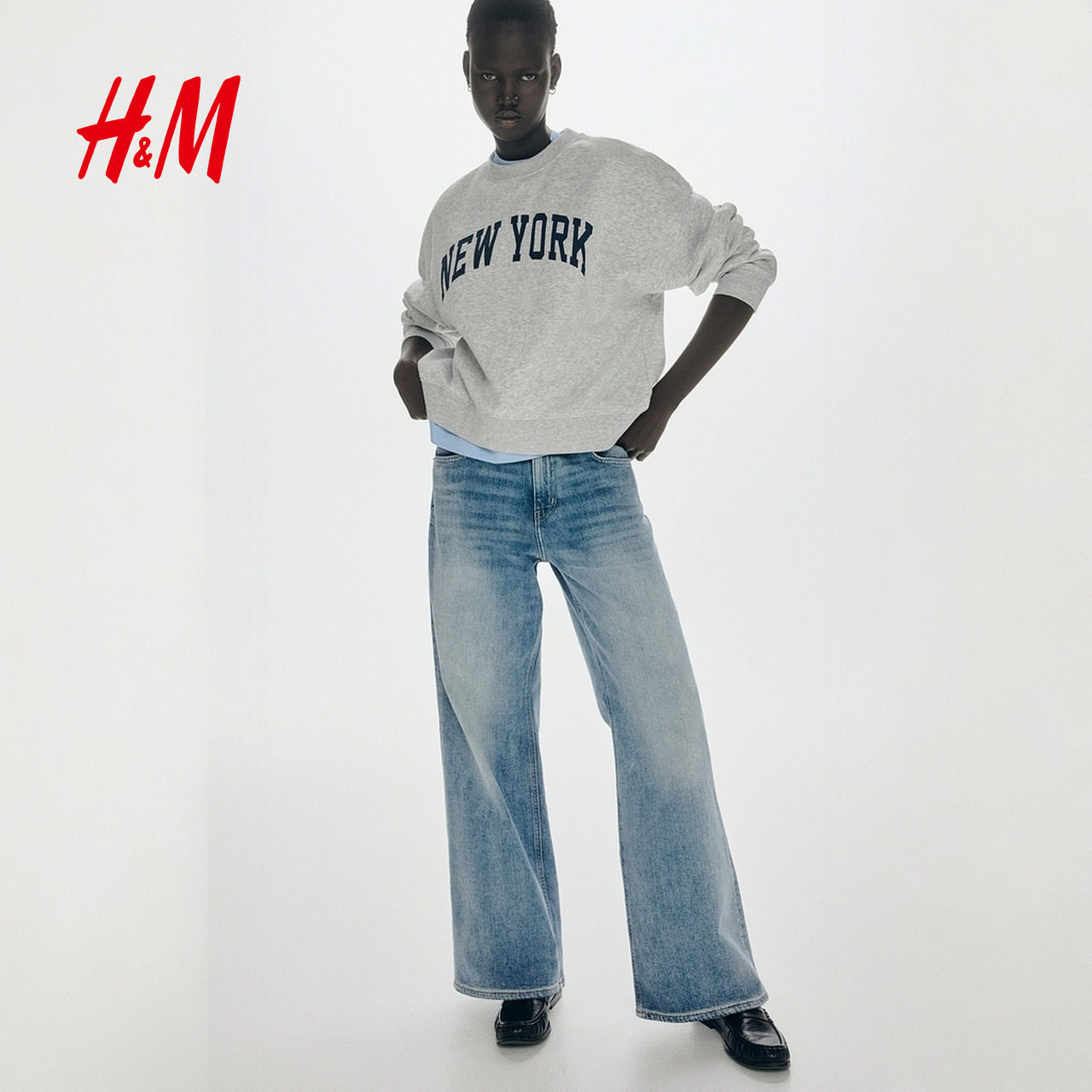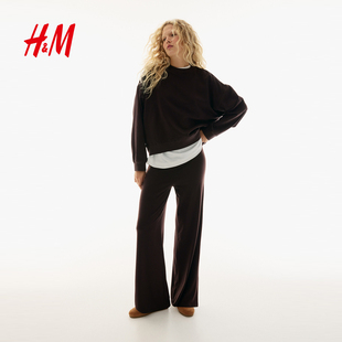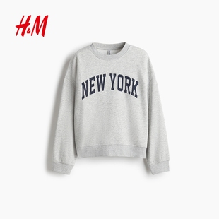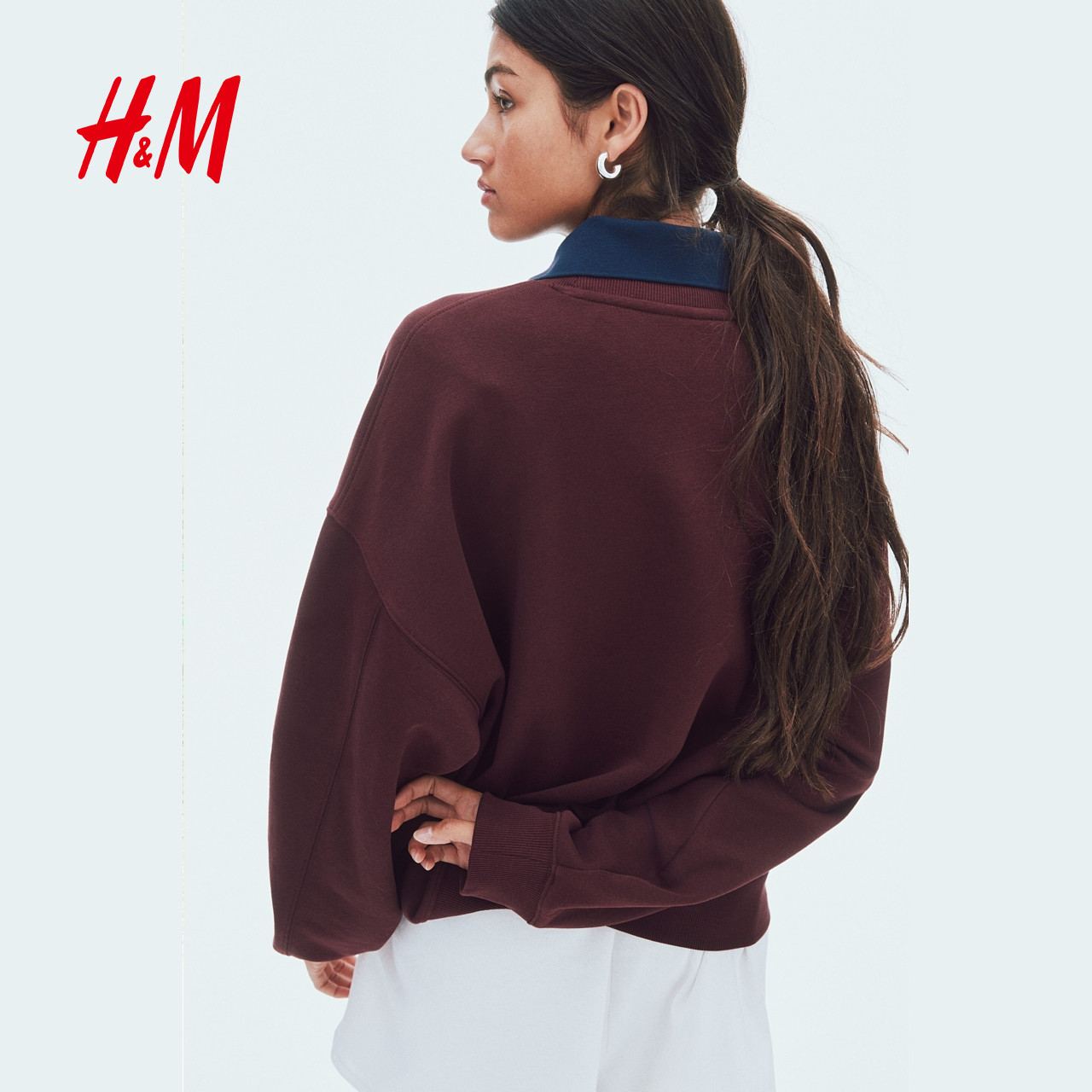 卫衣2025冬季 酒红色套衫 新款 印花落肩袖 1297143 圆领美式 HM女装