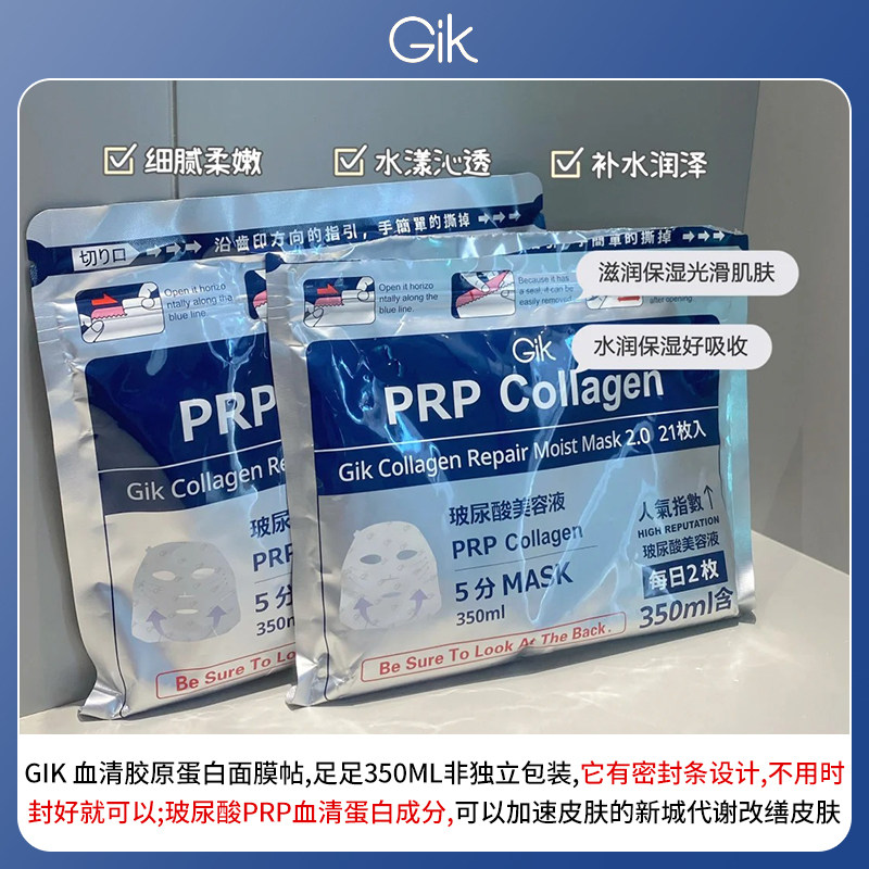 面膜21片免洗补水保湿 PRP胶原修护保湿 提升弹力3.0 Gik 弹润膜力