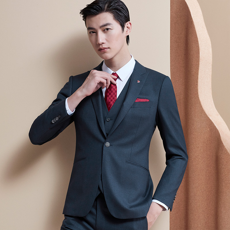 西装 罗蒙西服套装 上班修身 商务休闲职业正装 伴郎新郎结婚礼服 男士
