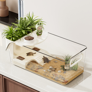 乌龟缸乌龟饲养缸家用亚克力创意新款 造景带晒台生态小型龟盆鱼缸