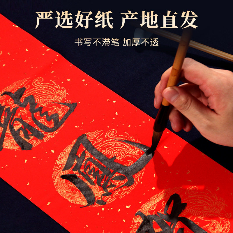 爱都对联纸空白手写春联纸万年红宣纸2026洒金书法五言七言定制
