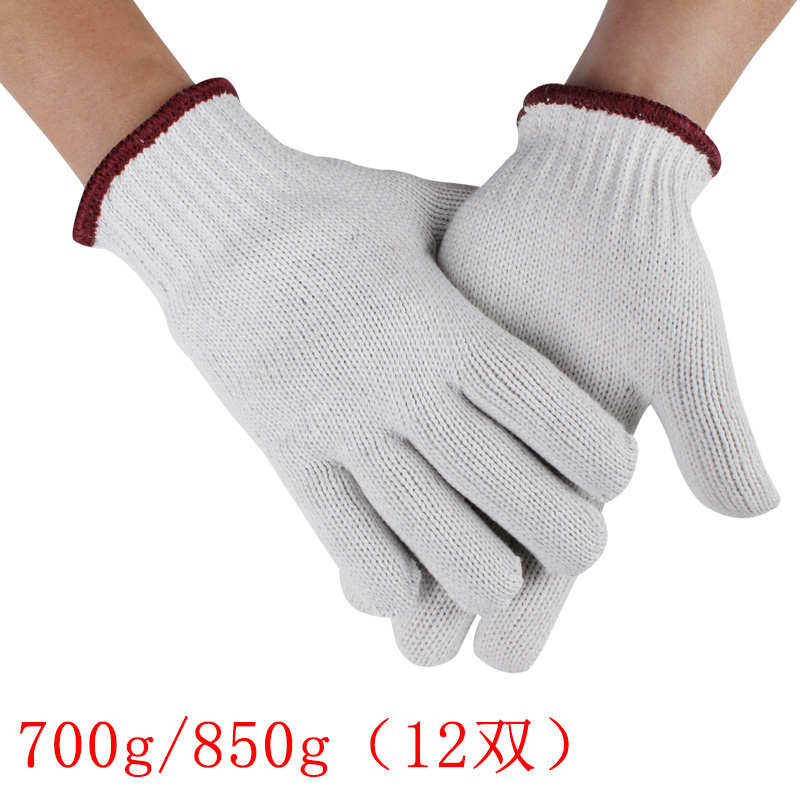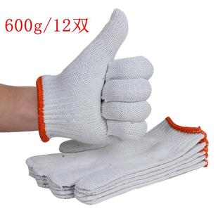 750g 800g手套劳保耐磨棉纱线白线手套加厚工地干活尼龙劳动修车