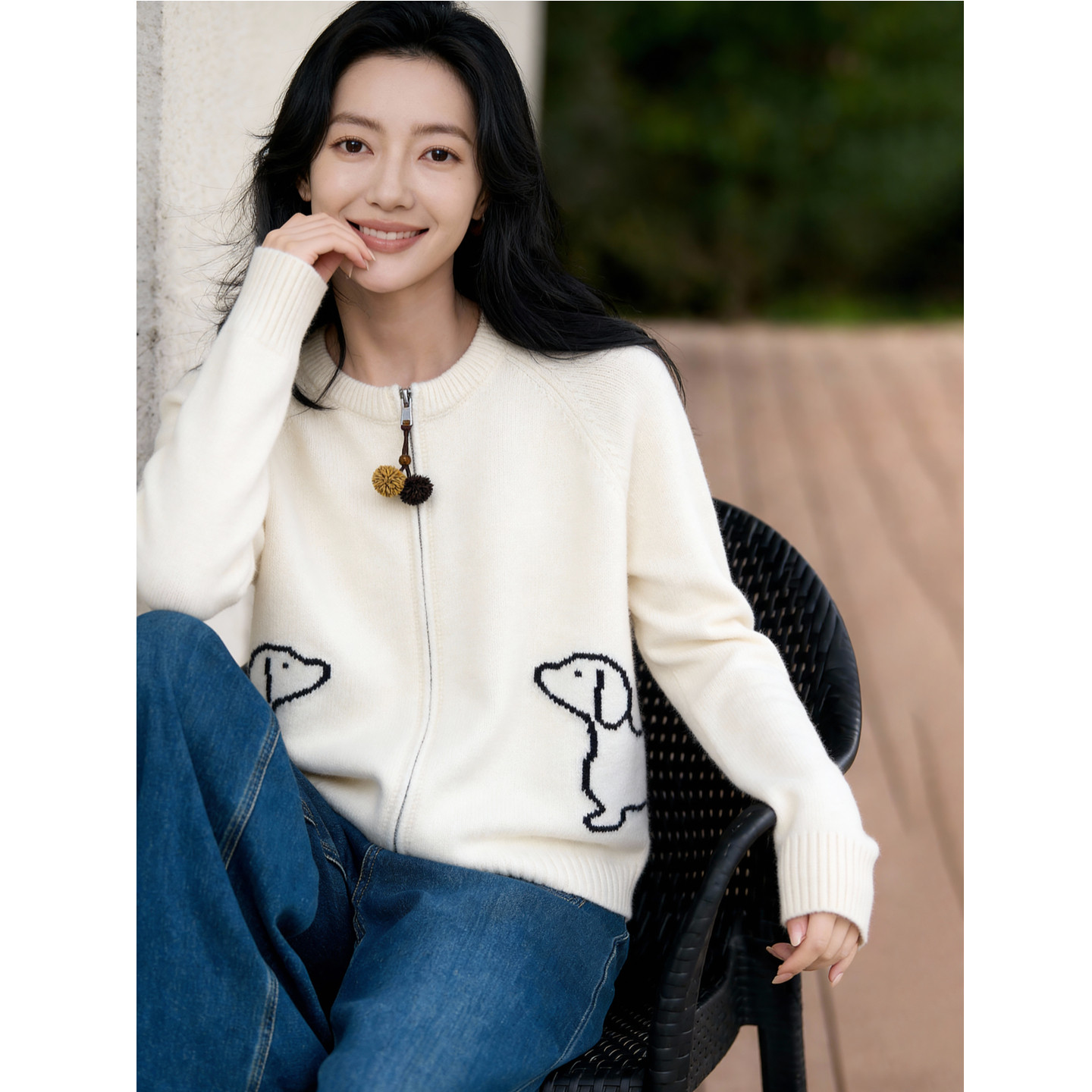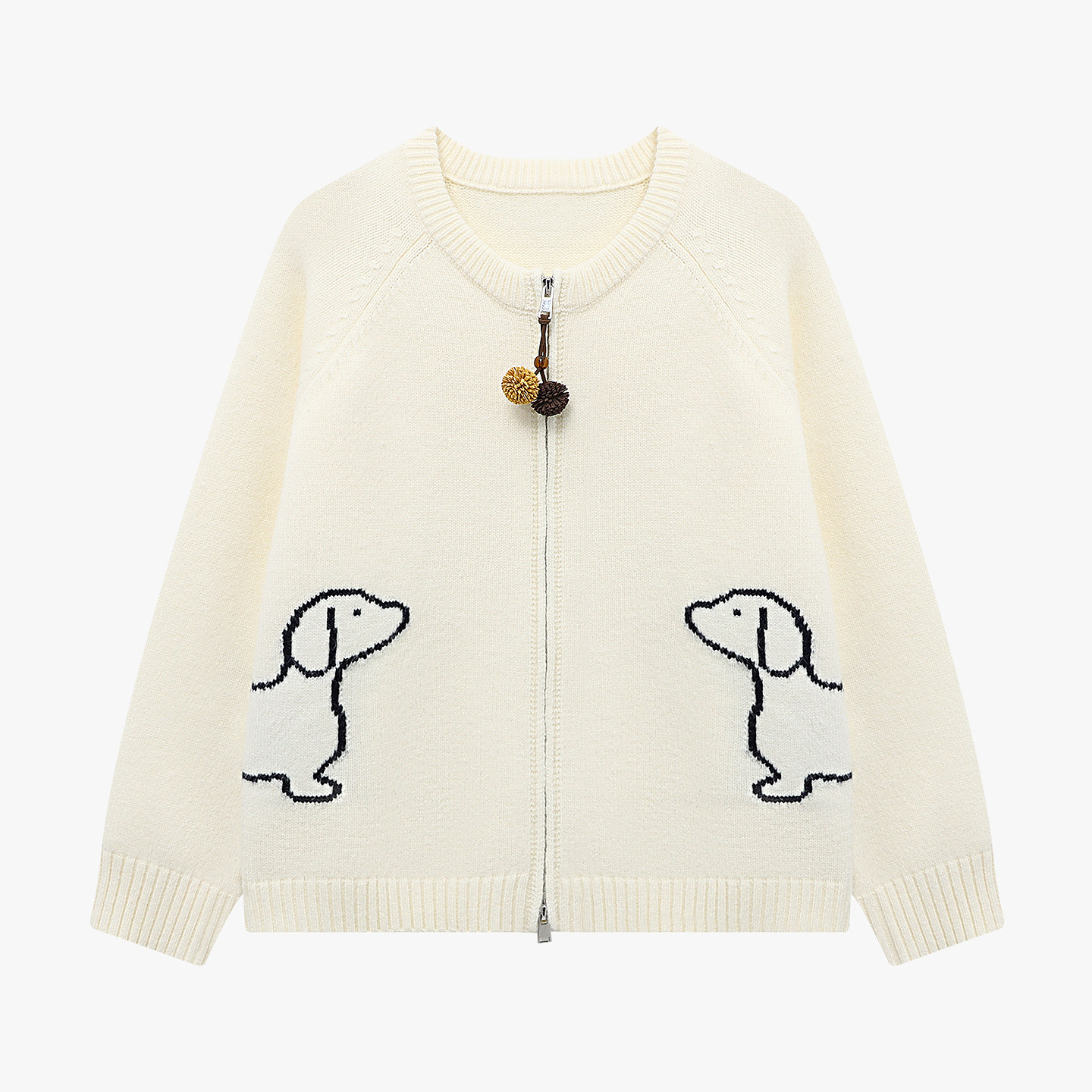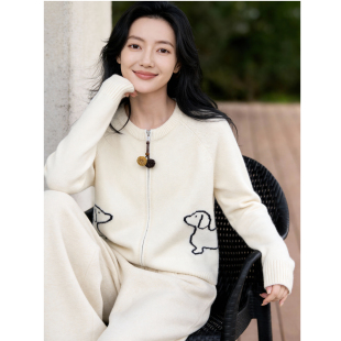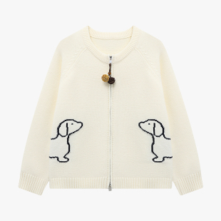 毛衣女春2026新款 百家好卡通小狗开衫 双拉链宽松上衣 House Basic