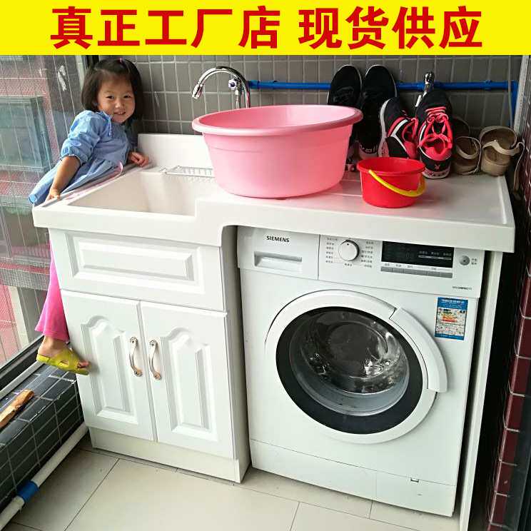 阳台实木洗衣柜伴侣组合浴室柜组合带搓板滚筒洗衣机柜超深洗衣池