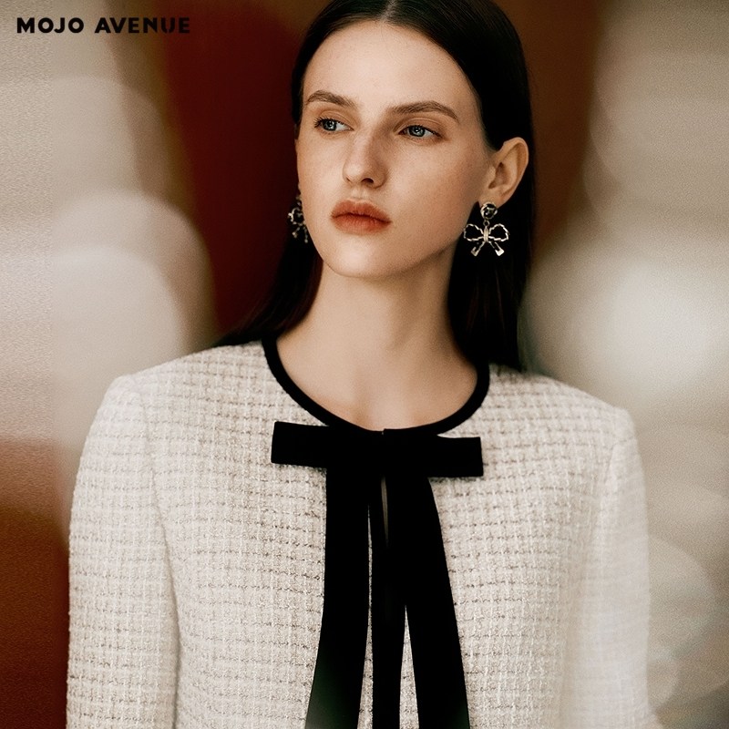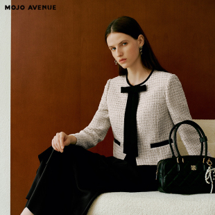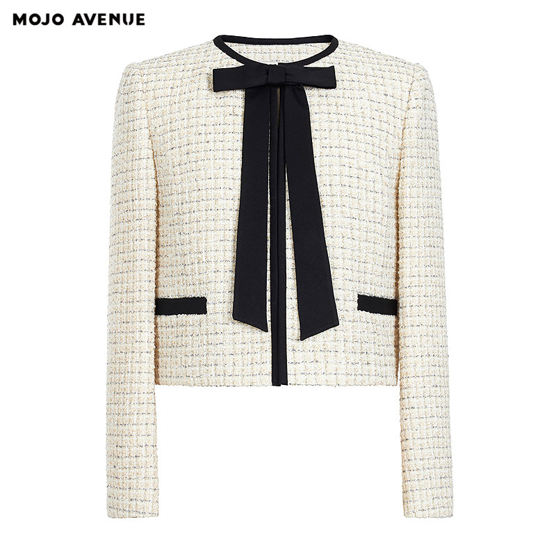 2026小香粗花呢短外套女灵动蝴蝶结领口上衣 新品 朗姿 MOJO春季