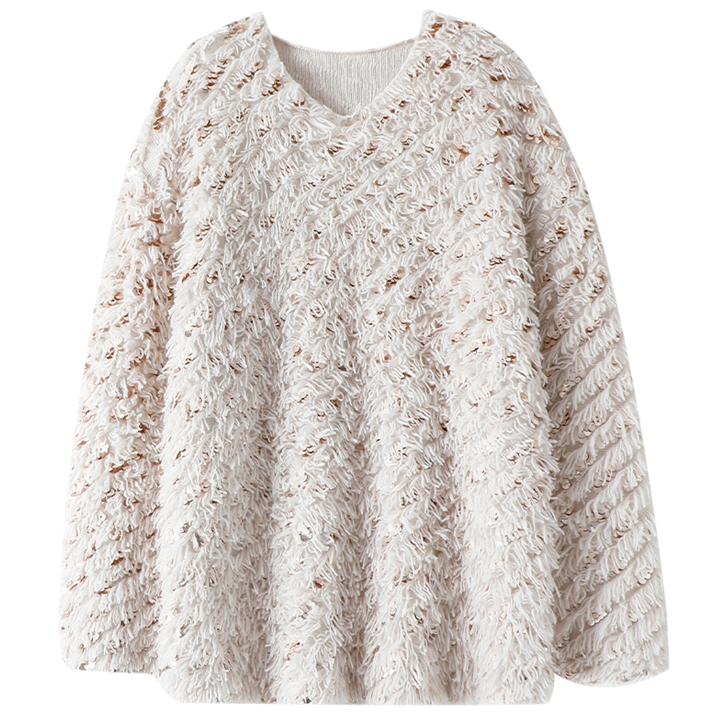 女V领毛衣宽松加厚 纯手工缝亮片100%纯山羊绒衫 高定 美学表达