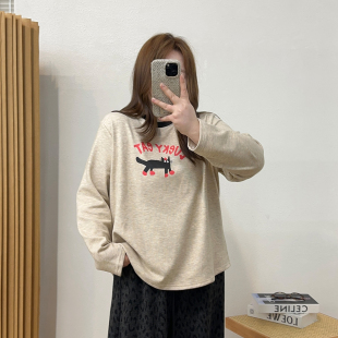 新款 宛宛大码 T恤秋季 抓绒字母印花长袖 胖mm宽松显瘦正肩上衣 女装