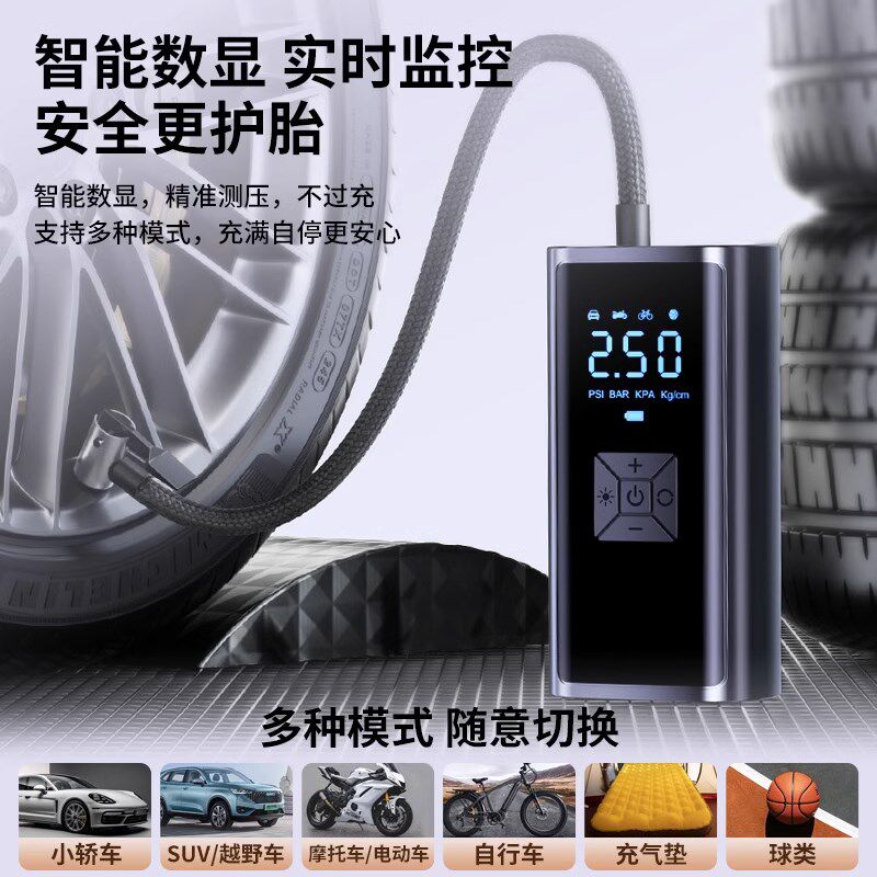 车载充气用便携式 汽车用打气泵电动轿车轮胎压打气筒宝