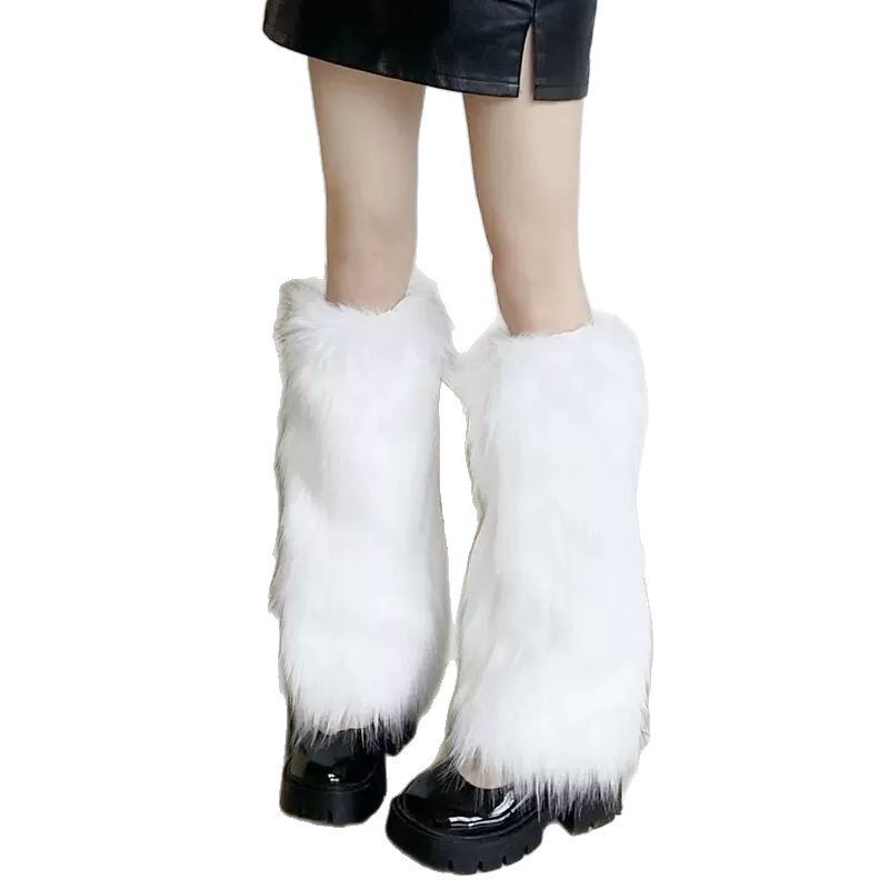 y2k千禧年多彩辣妹仿貂毛皮草袜套日系亚文化秋冬保暖毛绒腿套jk