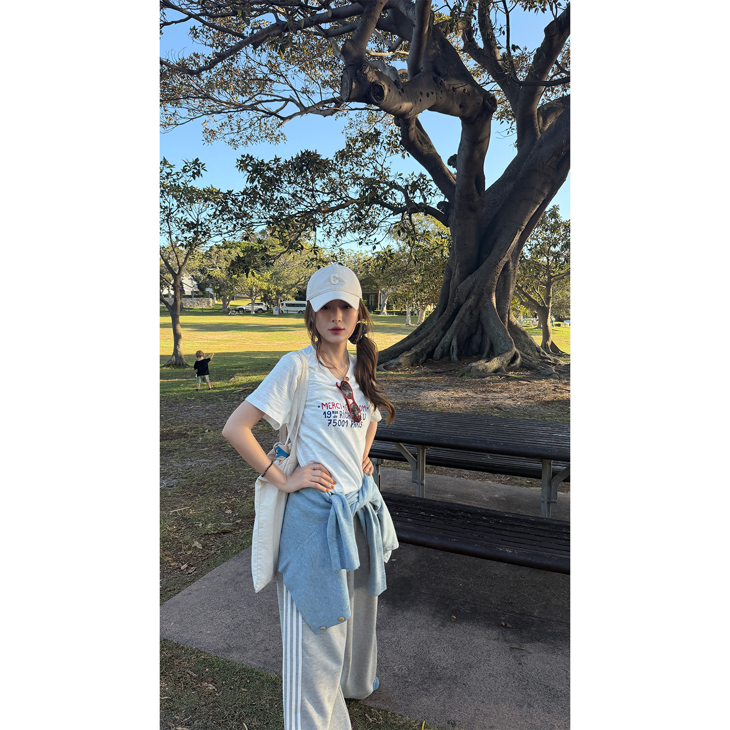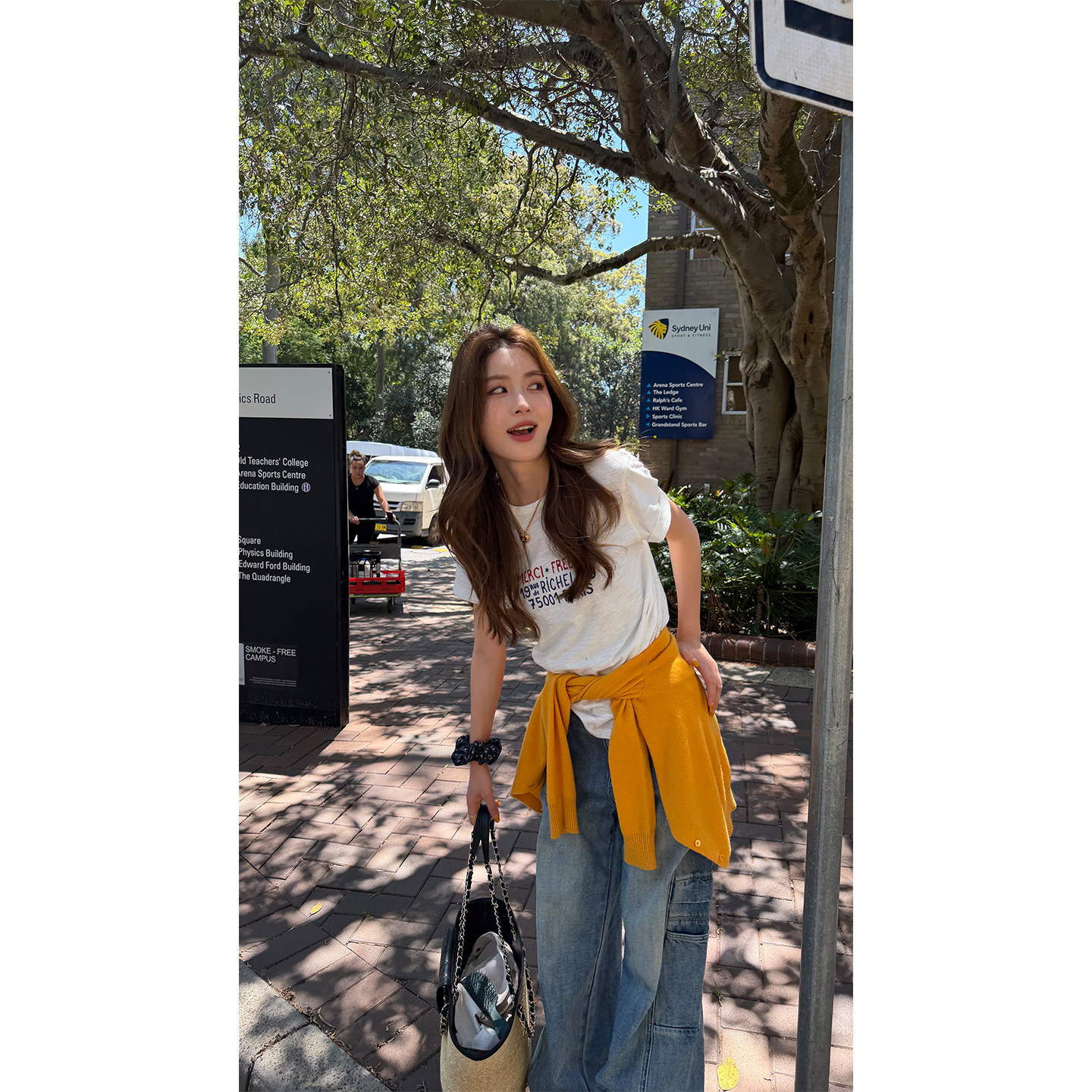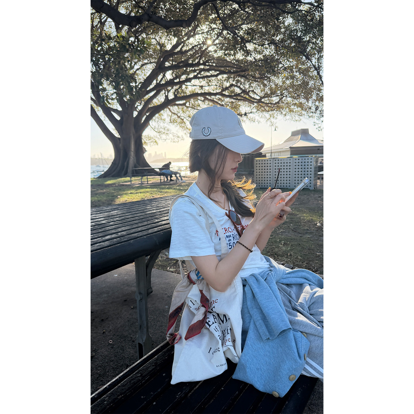 t恤女新款 标语印花短袖 清新文艺风宽松显瘦百搭上衣 法式 炽火火