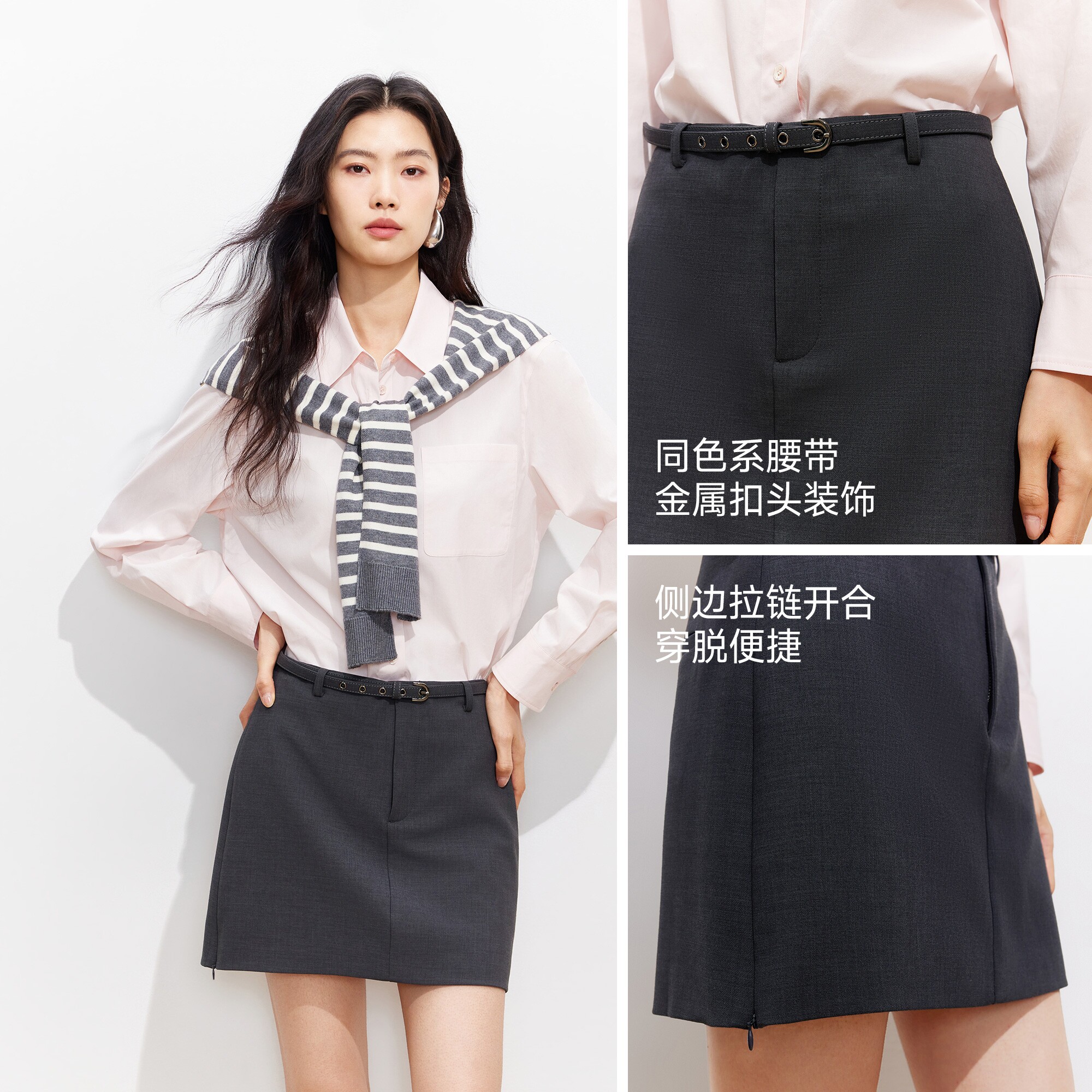 可拆腰带含内衬短款 新款 A字裙326115003 Moda半身裙2026春季 Vero
