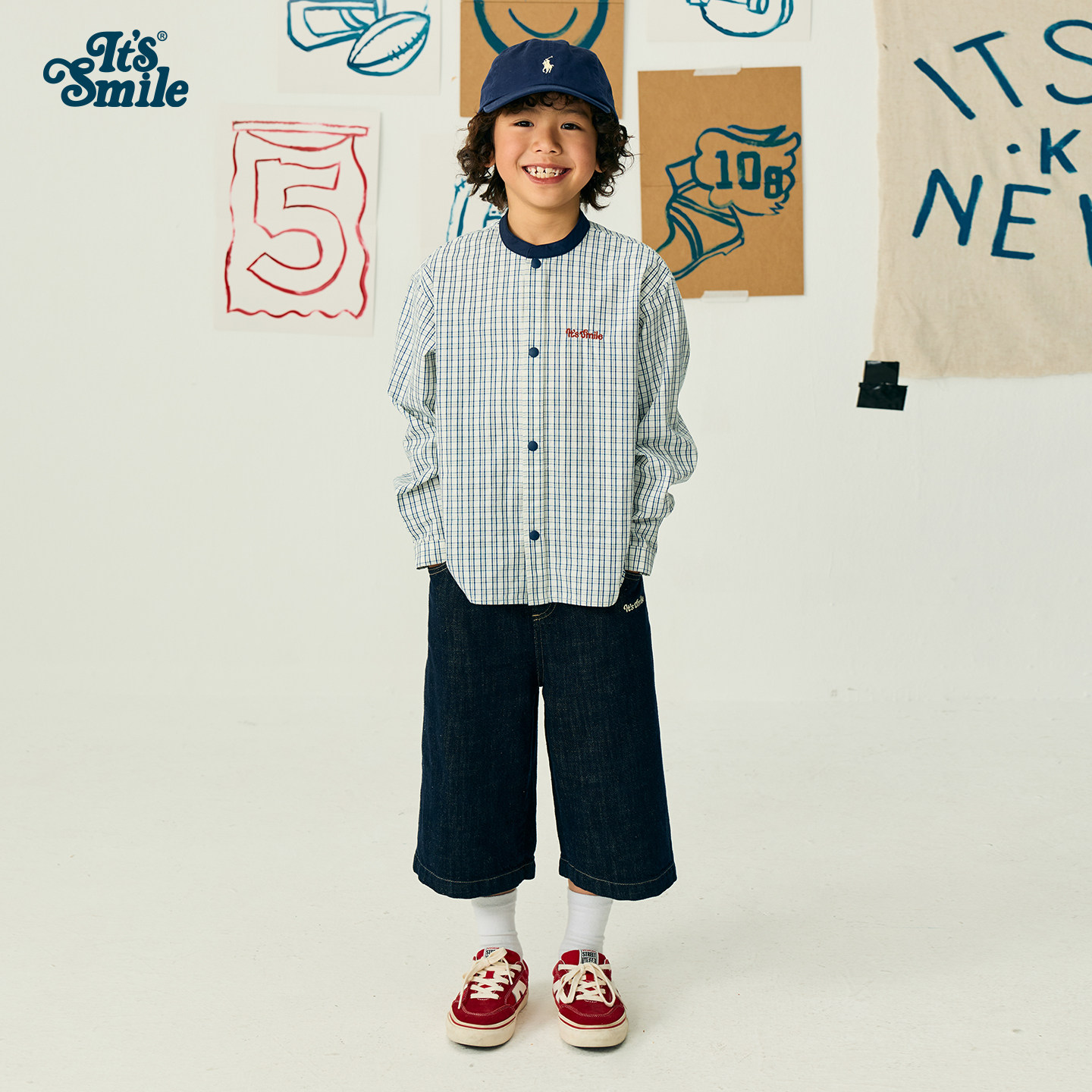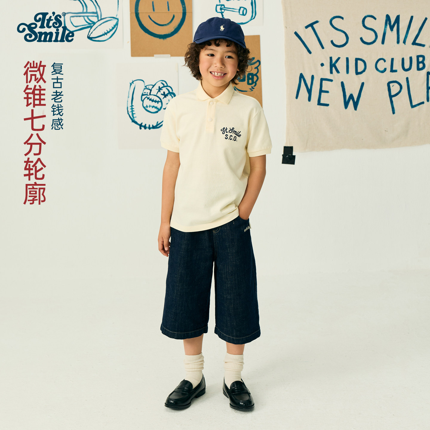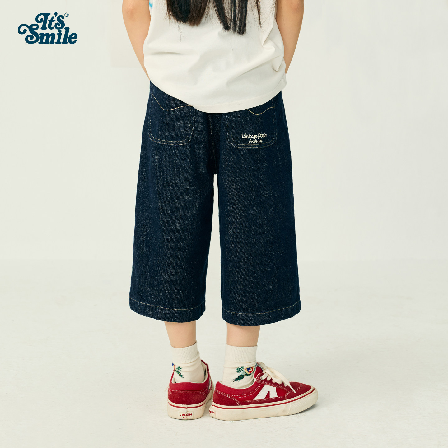 子女童初夏七分裤 Itssmile童装 儿童亚麻直筒裤 春夏新款 男童牛仔裤