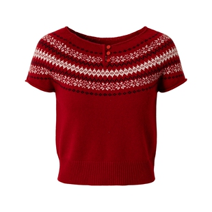 女复古圆领毛衣 针织衫 RPB BRAND细腻羊毛费尔岛风红色短袖
